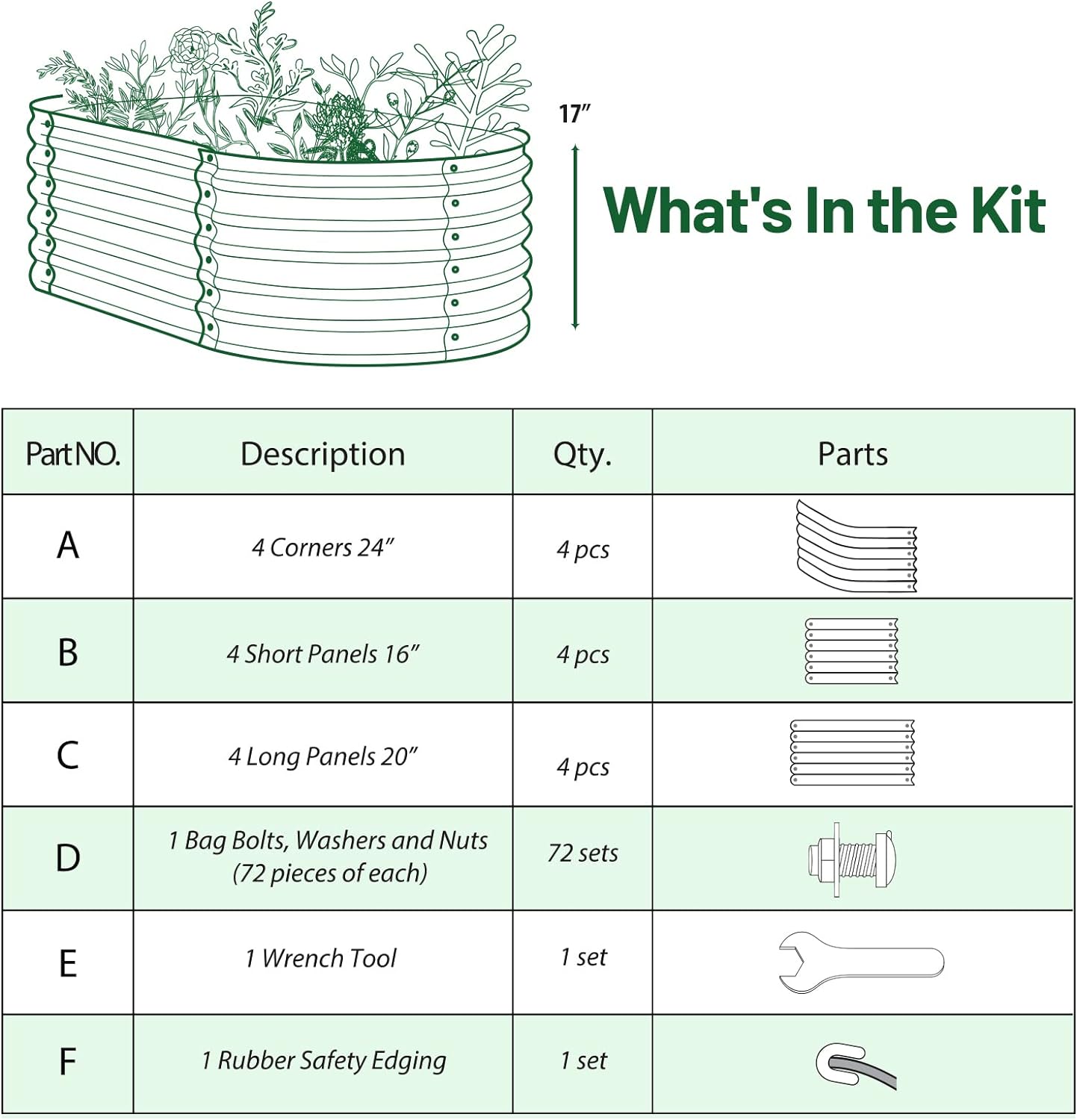 Olle 17" Tall Raised Garden Bed Kit Fruits Vegetables Flowers Planter Box 12-in-1 Galvanized Planter Boxes for Outdoors Size 5X5 Feets 8X2 Feets, Midnight Grey 17" Tall
