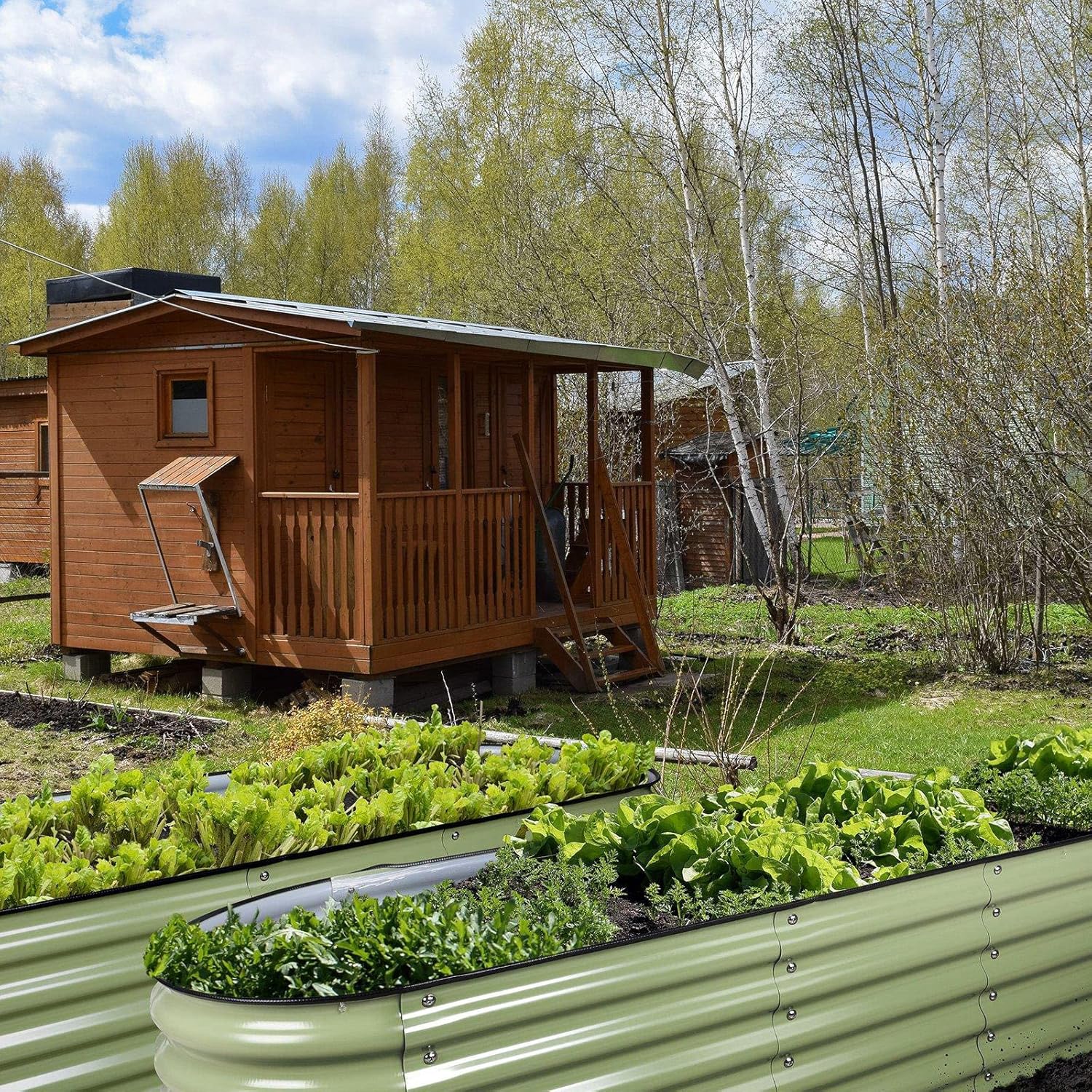 Olle Galvanized Raised Garden Bed Elevated Raised Garden Bed Metal 17" Tall 12-in-1 Grow Herbs and Vegetables Home Garden for Outdoor Backyard, Sage Green 17" Tall
