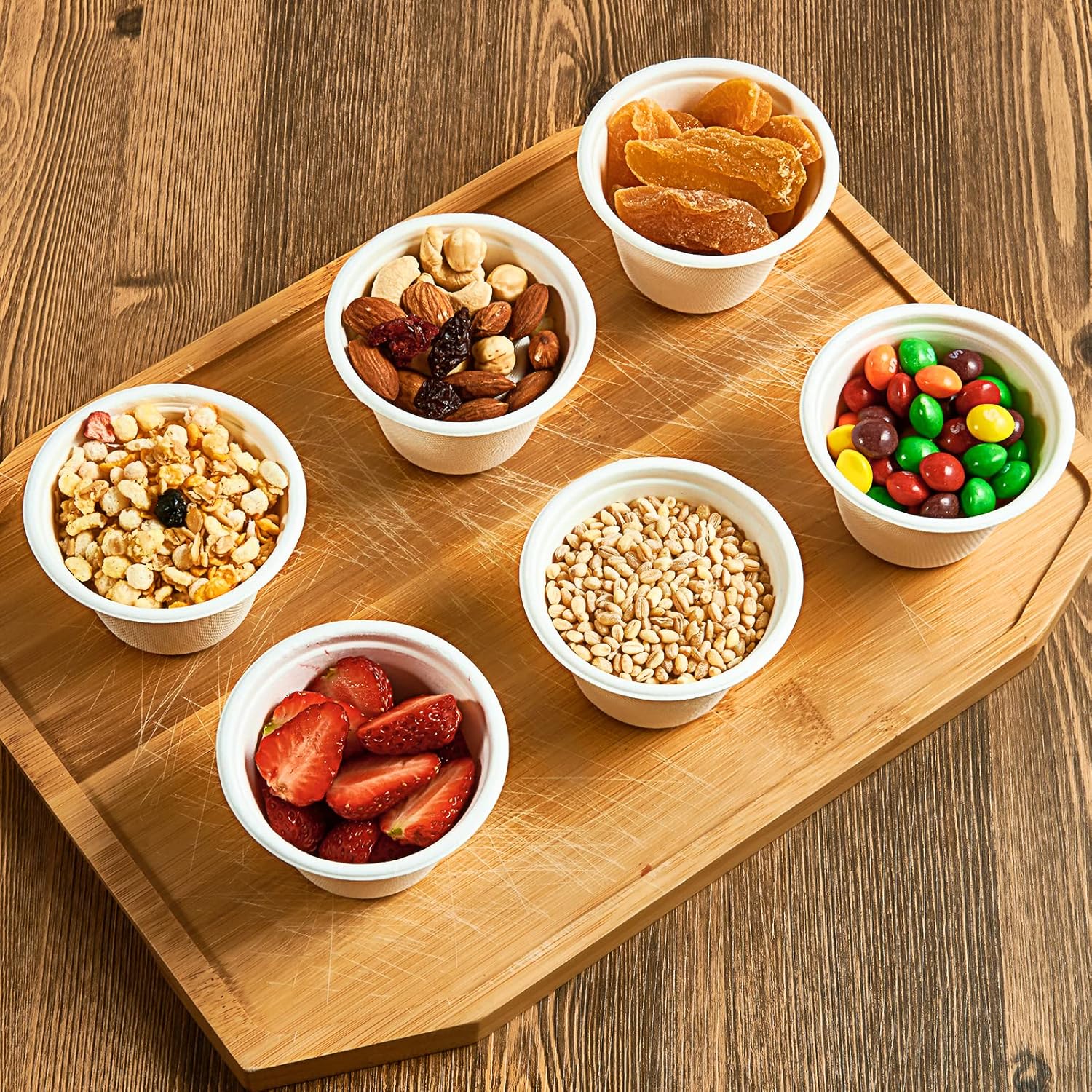 - Biodegradable Design: Our disposable portion cups are made of sugarcane which is 100% compostable. After use, you can put these bagasse cups into the compost bin. Helping you save plenty of cleaning time