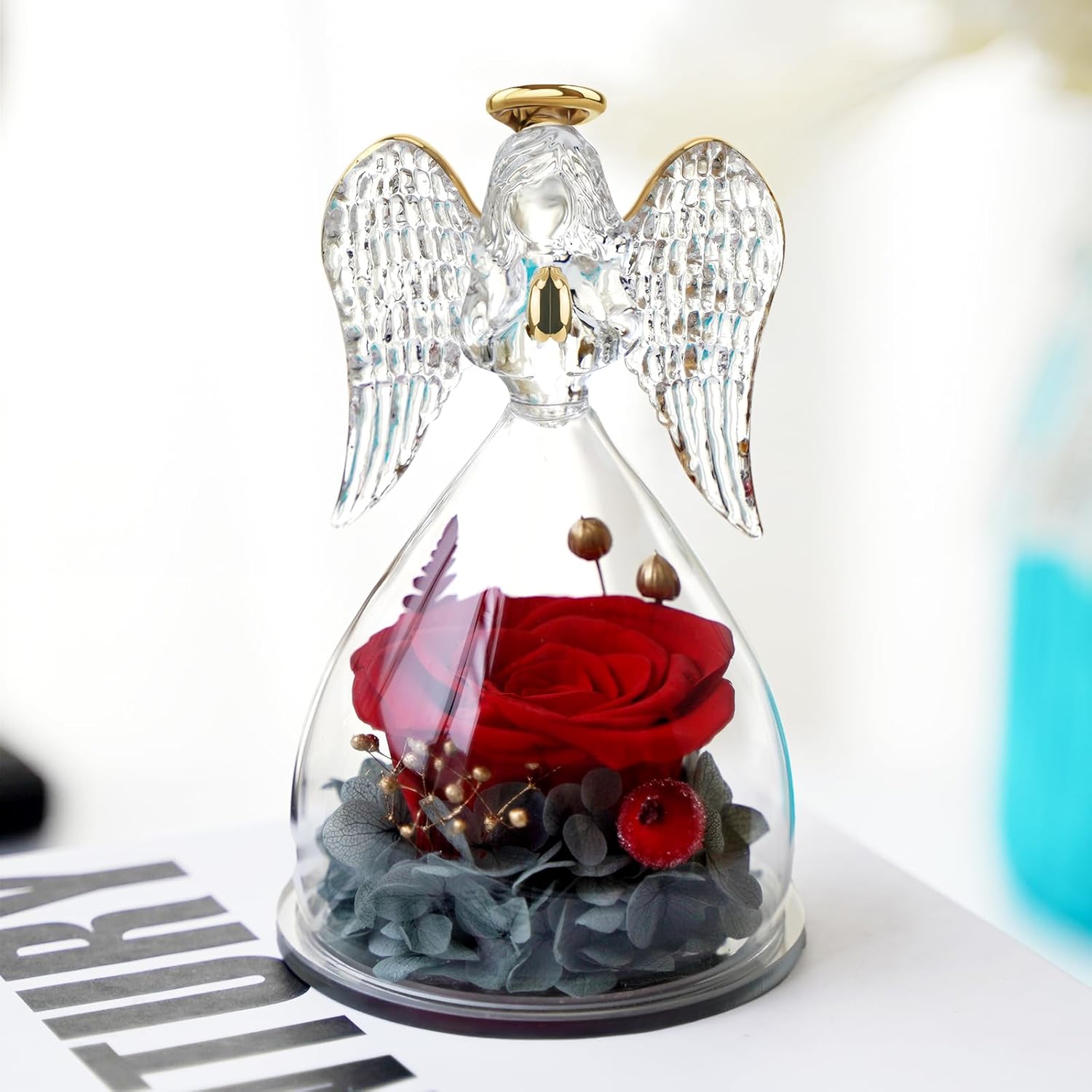 - Our angel figure forever real rose is made with unique preservation process, which can last 3-5 year, you just need to put the angel preserved flowers rose gift in a cool place, no need watering and sunlight.