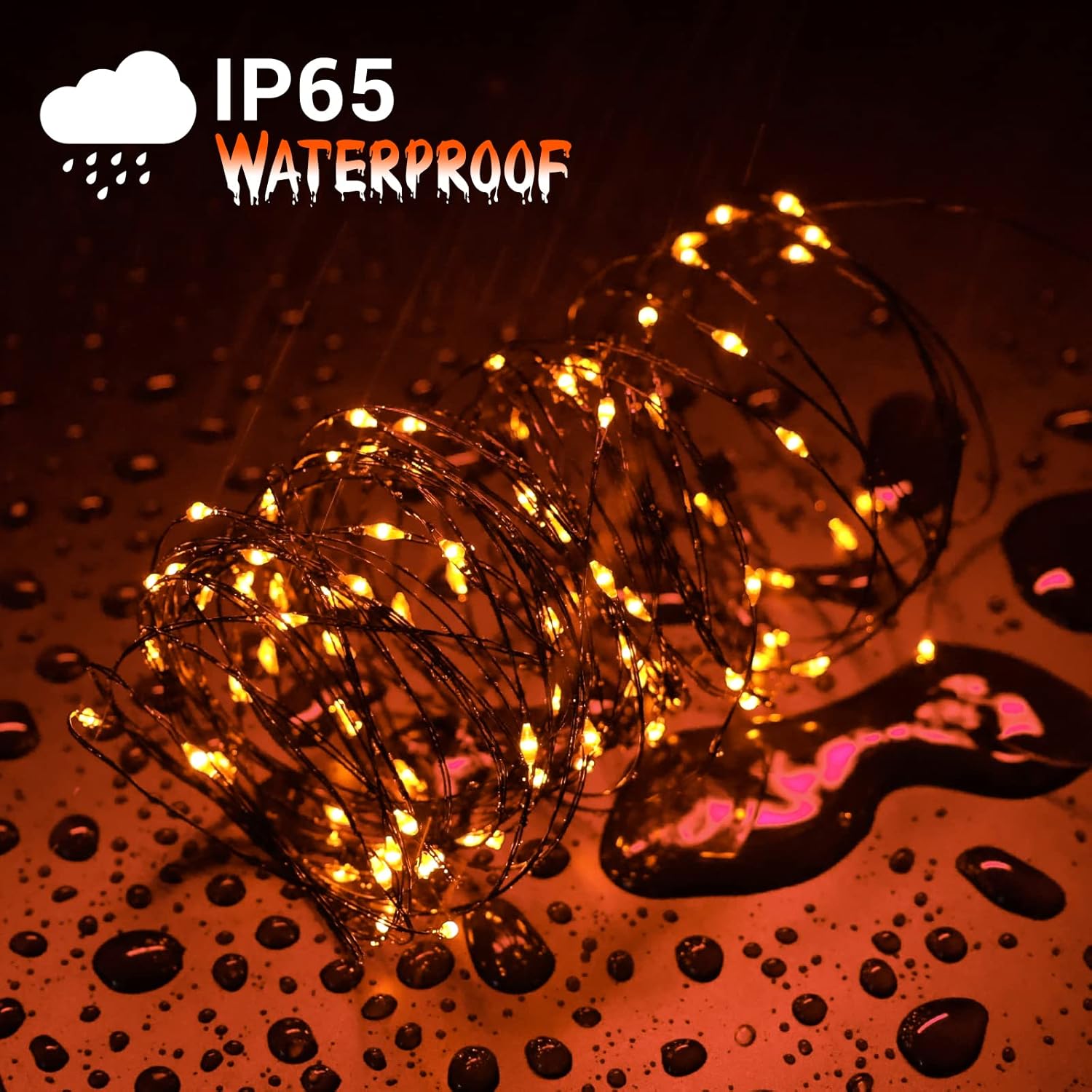 - Flexible DIY Halloween String Lights: On 39ft ultra-thin and high-quality bendable black wire, the solar orange lights conform to any shape you want, with a steady 360-degree viewing angle which illuminate in every direction. Also, they easy to store and ready for next use