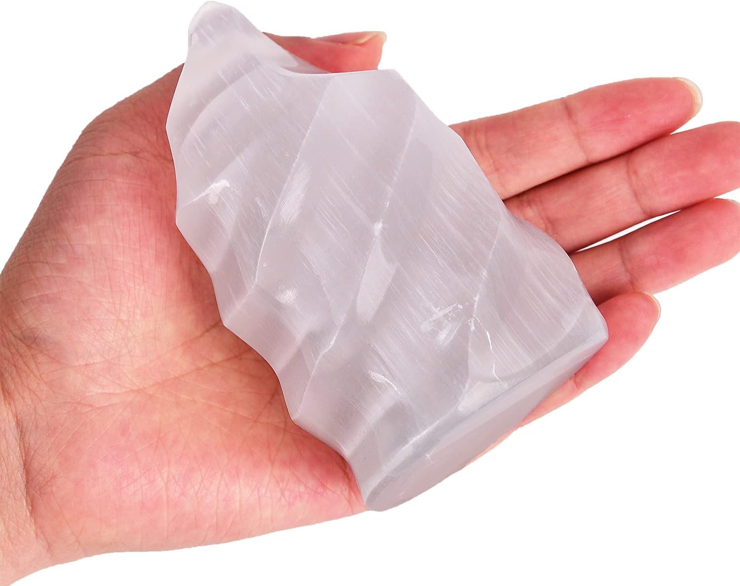 - Selenite are white and translucent and with beautiful striations, it look almost like a silky pearl.Itβs usually tubular in shape, with different patterns and striations, looks unique and elegant. Please allow slight flaw as a natural product