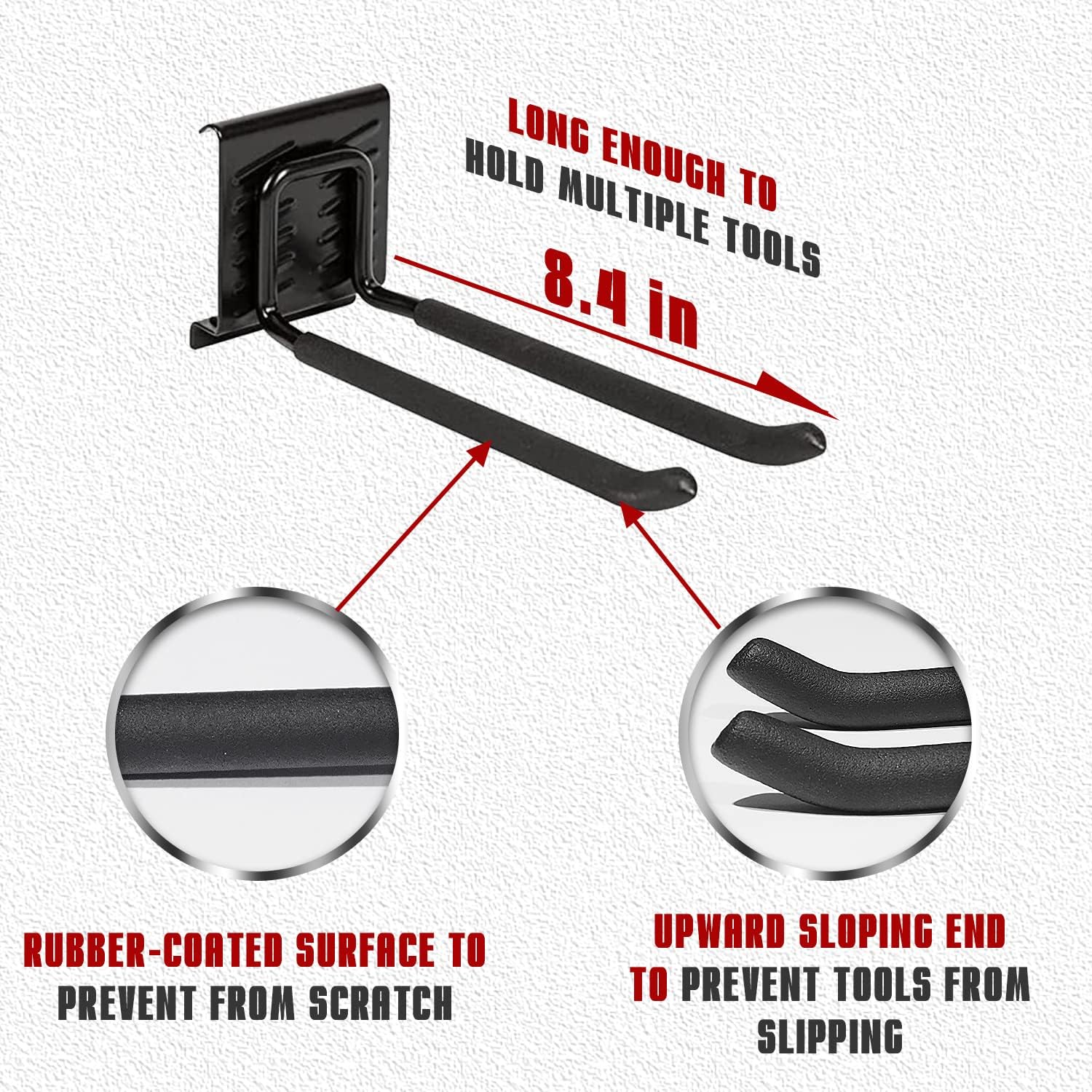 - 【Adjustable Design】We designed the garage hooks to be adjustable in rails, each hook has 12 solder joints and a rubber pad on the bottom to hold them securely on the board.