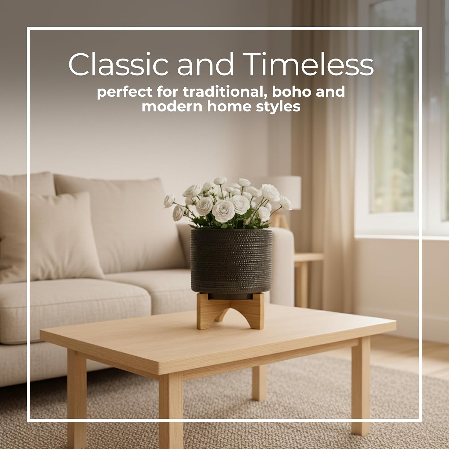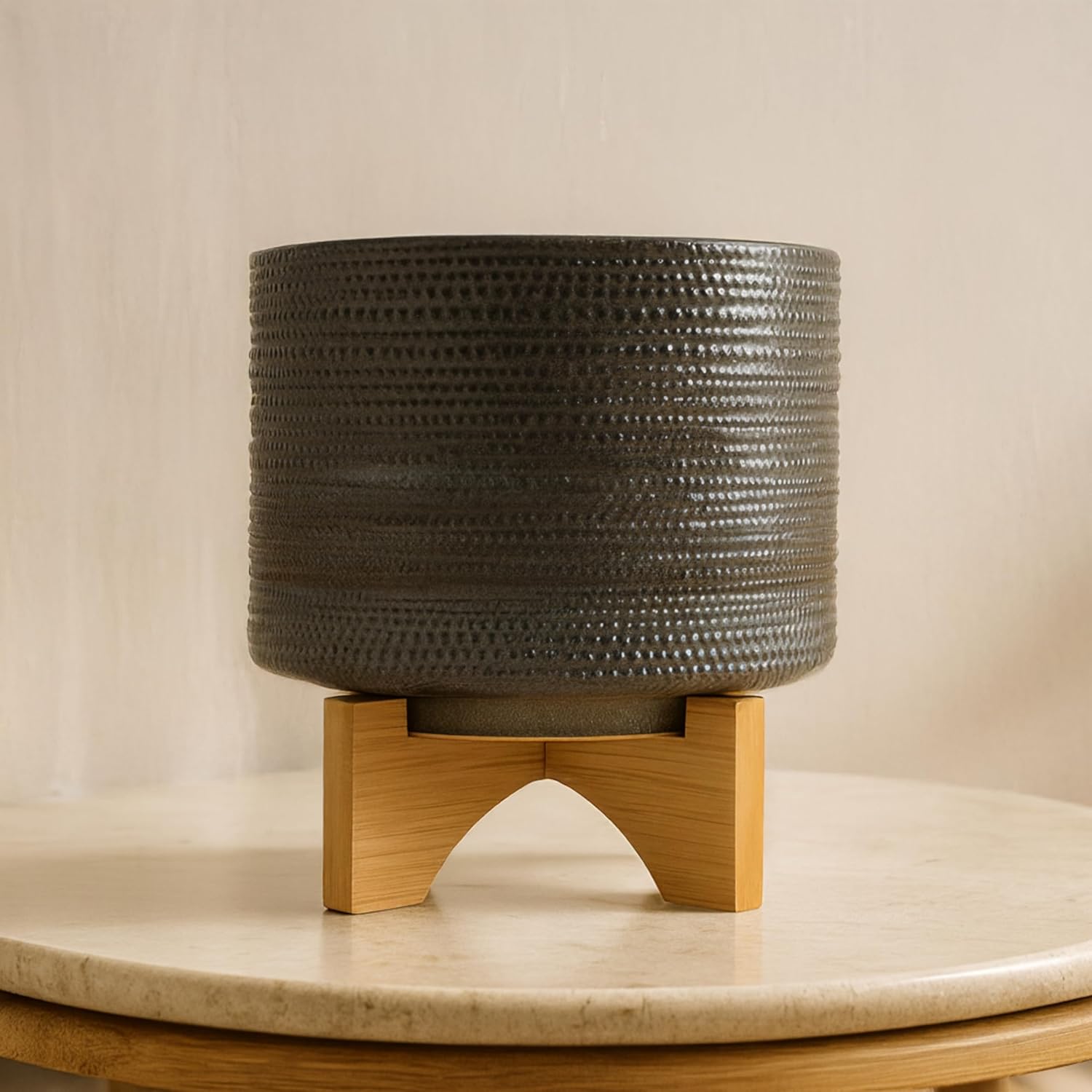 - GREAT GIFT IDEA - Surprise plant lovers with this chic ceramic planter and wooden stand. Whether for housewarmings, birthdays, or holidays, this decorative plant pot is a thoughtful and stylish gift that adds charm and greenery to any environment.