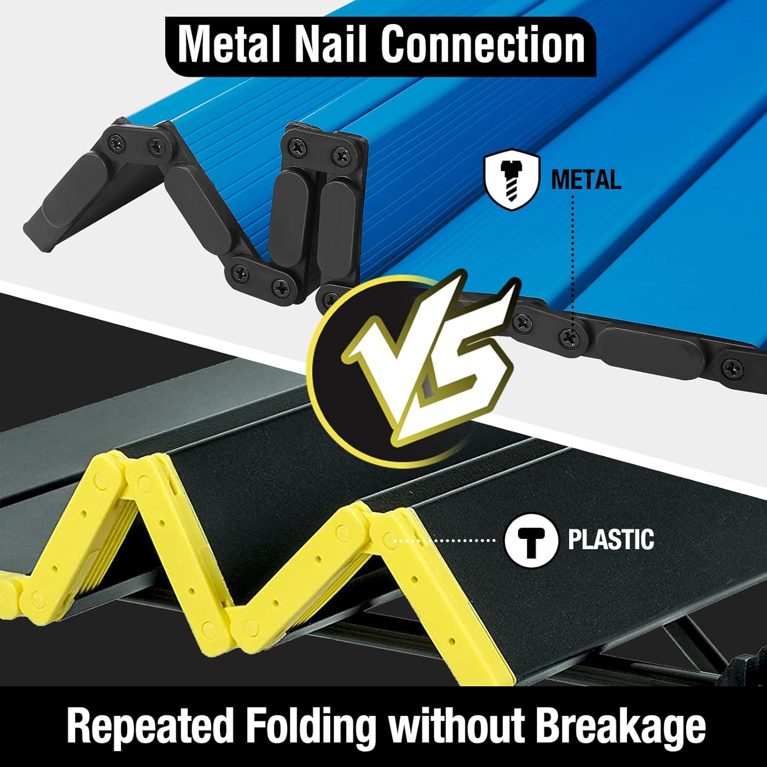 - Sturdy Construction for High Load Capacity: This portable table is made of high-quality aluminum, the legs will not fold, bend or fall off with the stable foot cap, allowing it to be used on different terrains without the risk of tipping over. The heavy-duty construction and sturdy joints make the foldable camping table can support 100 pounds of weight