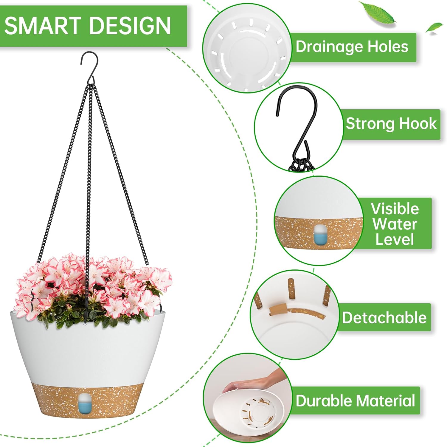 - 【Hanging Basket With Visible Water Level】Our hanging pots for plants indoor come with a visual water level window to monitor the water storage status in real time, avoiding damage to your plants due to lack of water or overwatering, ensuring that your plants thrive under scientific care