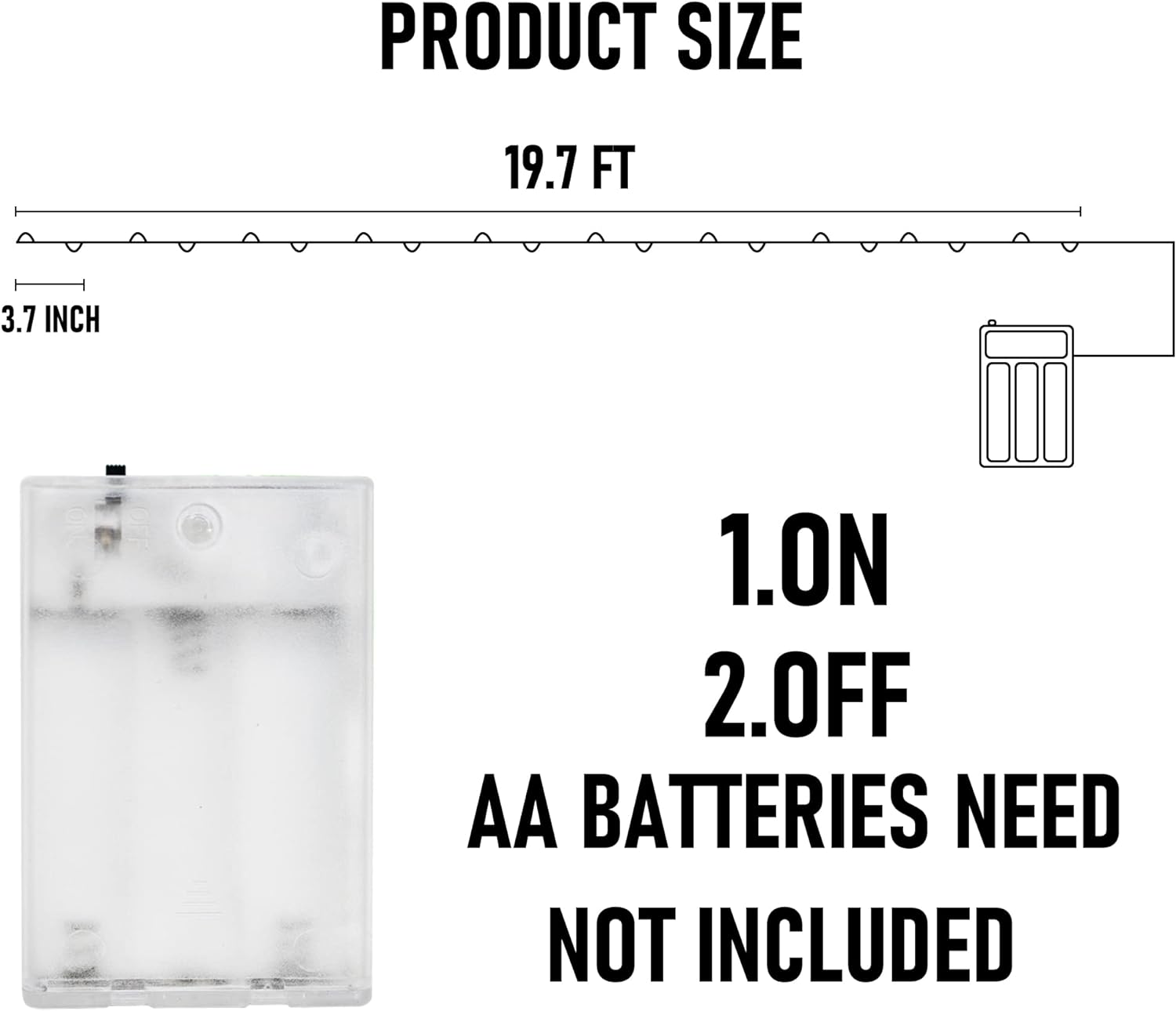 - Size: Dazzle Bright fairy lights comes with 60 LED bulbs. Bright lights exude a 360 degrees charming light, add a festival glow to your home. The fairy lights is 20 ft, bulb spacing is 3.7 inch.