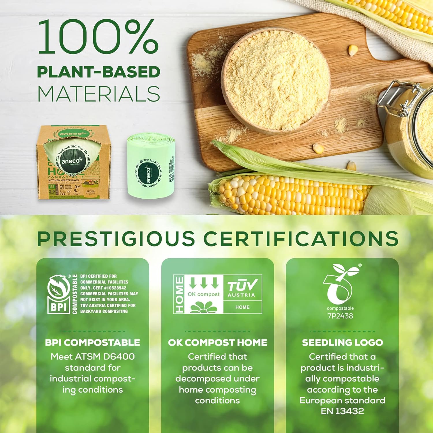 - š Proud to be one of few HOME compostable trash bags in the market, ANECO Compostable bag can break down completely not only in industrial facilities but also in home system. Use these bags to collect kitchen scraps and put them straight into the compost dumpster, or bury and turn them into valuable compost for your garden