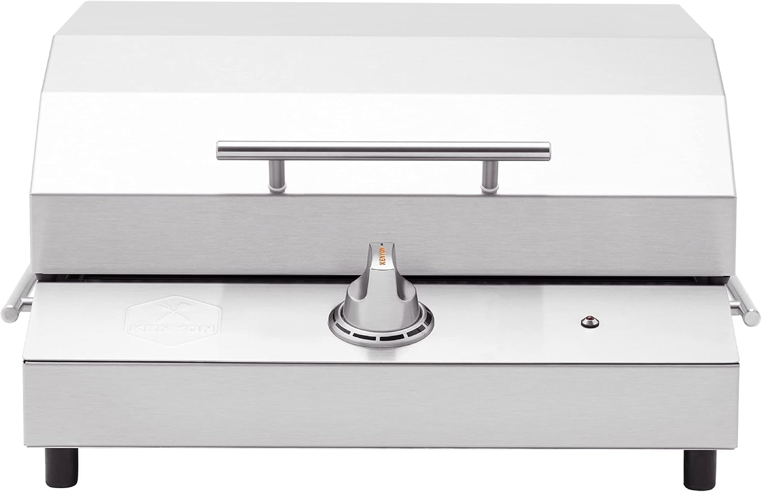 Kenyon G2 Portable Tabletop Electric Grill, 1440W Single Burner, Stainless Steel Body, Cast Aluminum Grate, UL Approved Grill For Indoor And Outdoor Use, Removable Lid, Dishwasher Safe, 120Volts