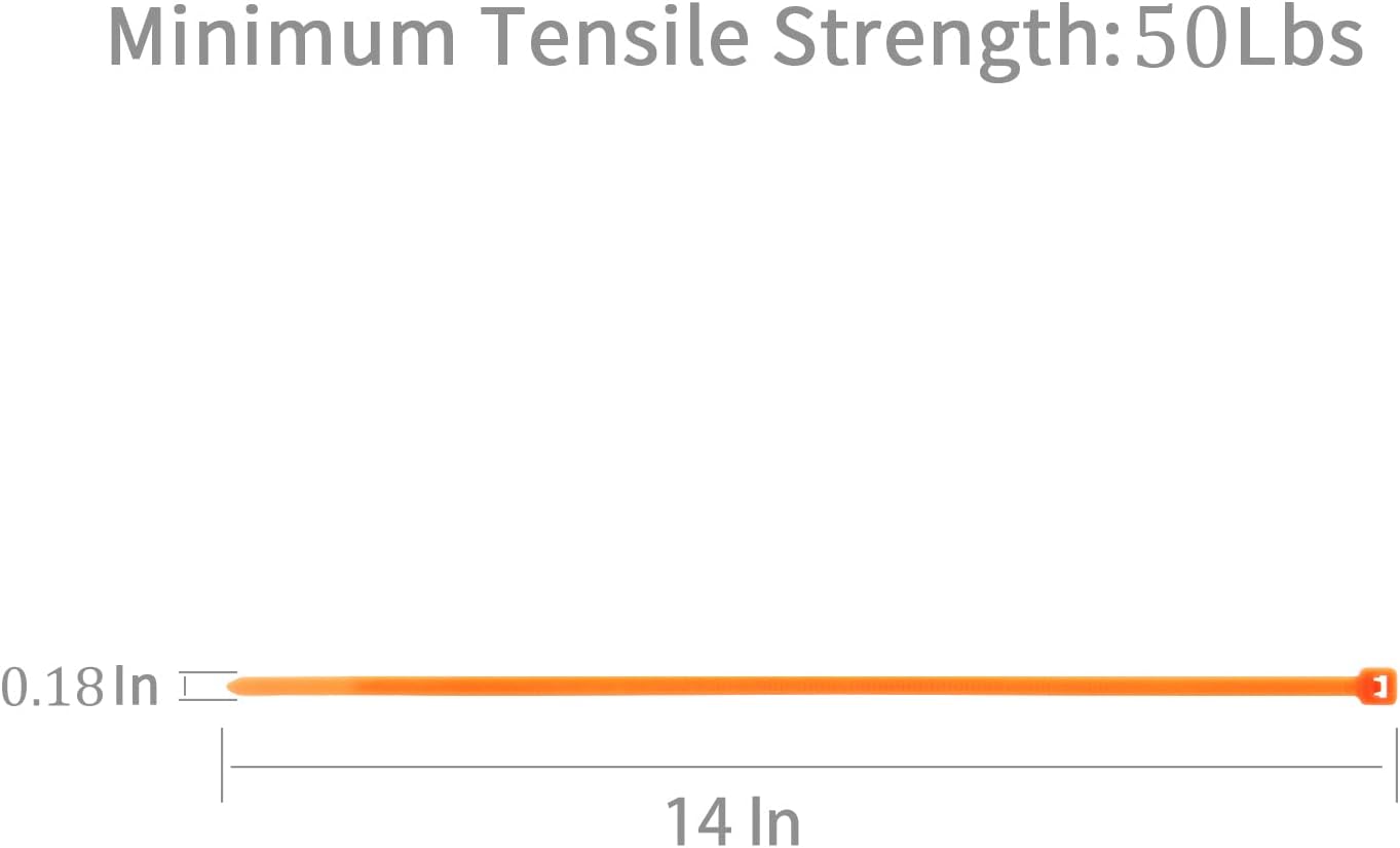 XINGO 100PCS Cable Zip Ties Heavy Duty, Premium Nylon Plastic Wire Ties with 50 Pounds Tensile Strength, Self-Locking Black Nylon Zip Ties for Indoor and Outdoor (14 inch, Orange)