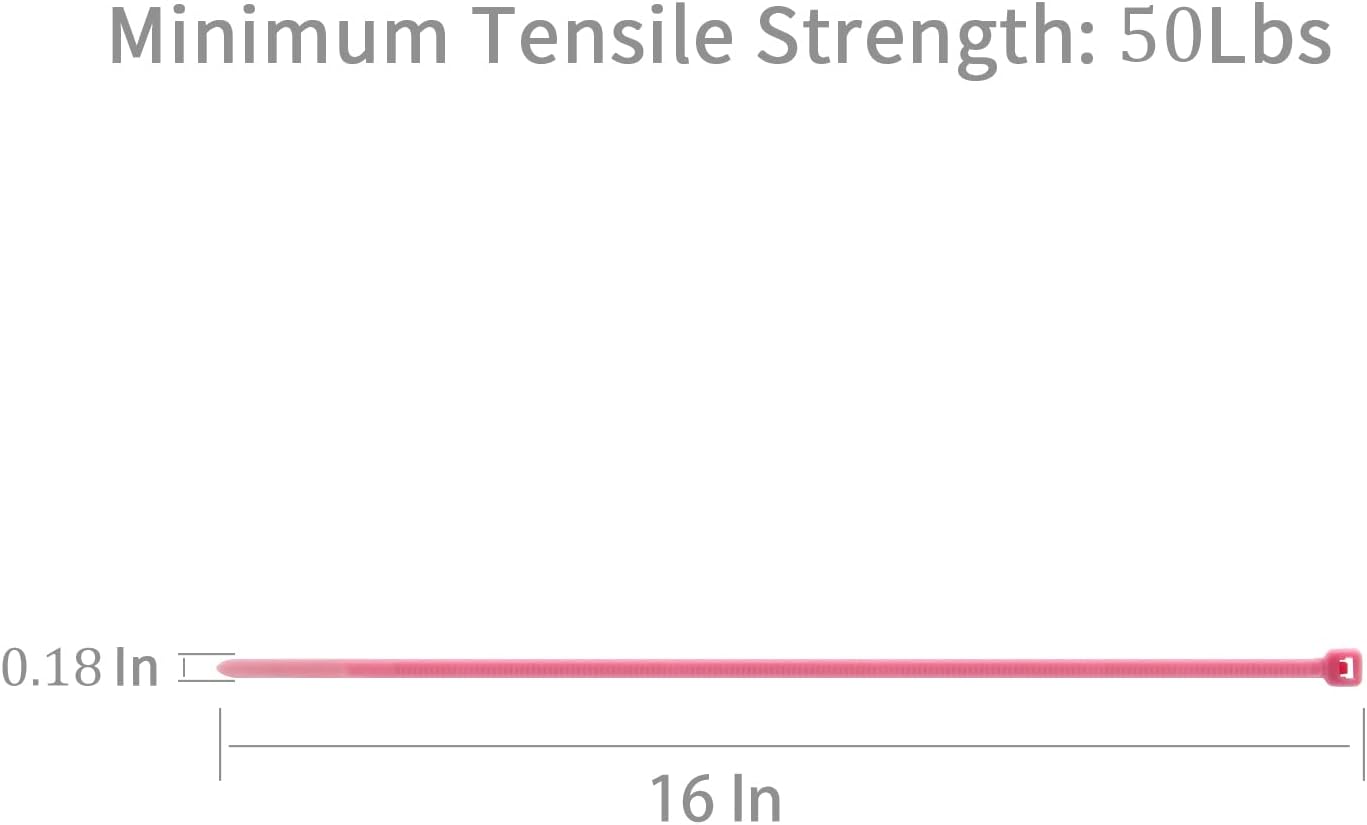 XINGO 100PCS Cable Zip Ties Heavy Duty, Premium Nylon Plastic Wire Ties with 50 Pounds Tensile Strength, Self-Locking Black Nylon Zip Ties for Indoor and Outdoor (16 inch, Pink)