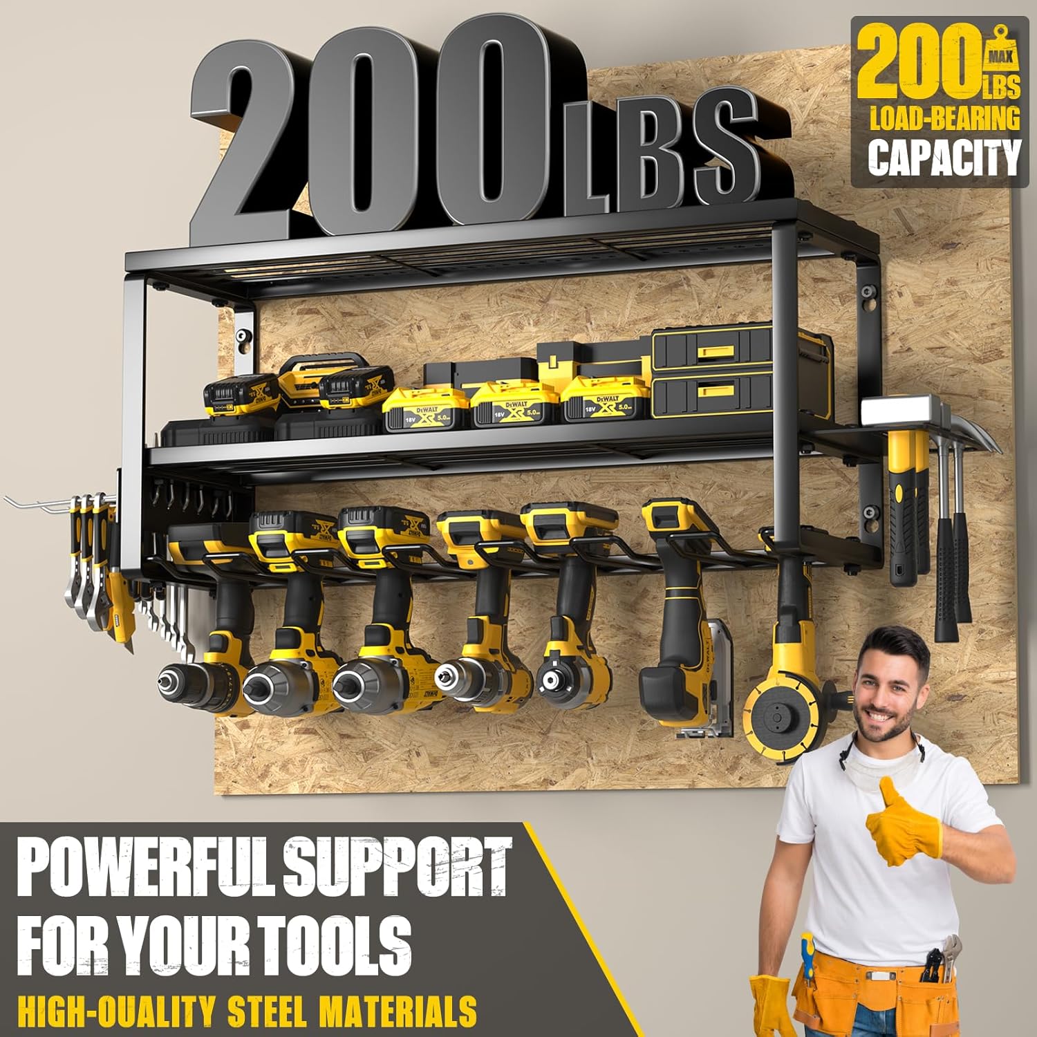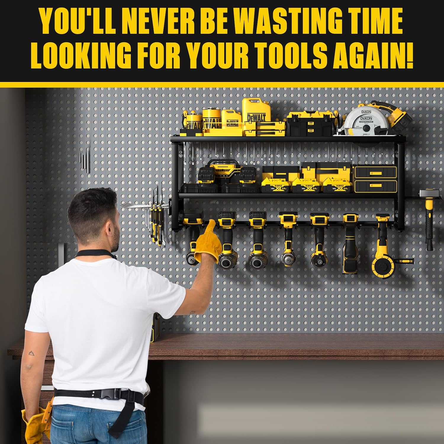 - 【EASY TO INSTALL】: The installation process of our cordless tool organizer is easy, we just need to connect the gauge steel wire and plating with screws and hang it on the wall. We offer professional manuals and professional installation accessories. You only need a few minutes to assemble a perfect tools organizer for garage wall