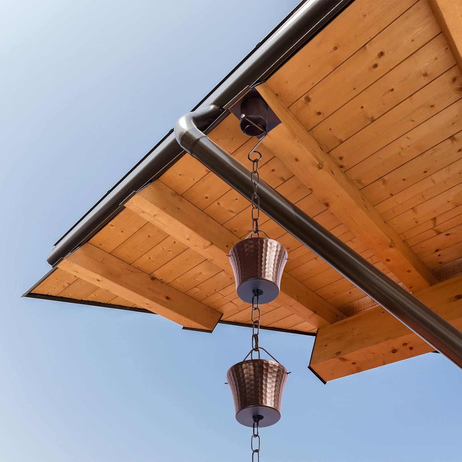 - Rain Chain Creative :A decorative item for gazebos, garden sheds and patios, and a great gift for gardening friends.If you don't exactly like copper rain chain what you've purchased, just return it for an easy refund.