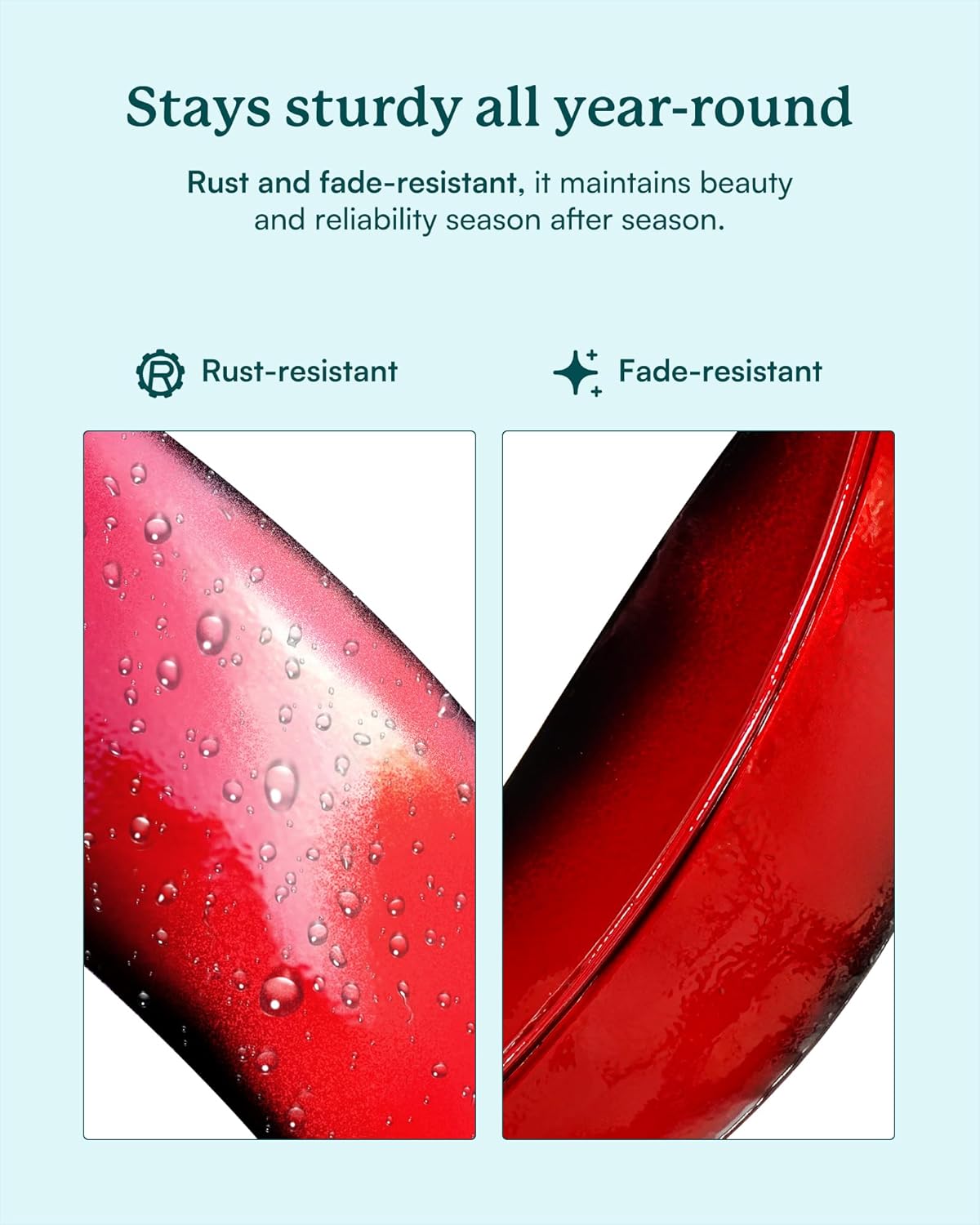- TULIP OUTDOOR METAL DECOR: Made of sturdy metal with protective coating finishes. UV, RUST, and FADE RESISTANT. The all-season decorative spinner can be cleaned easily to keep its reflective shine and rustic appearance. Long-lasting use.