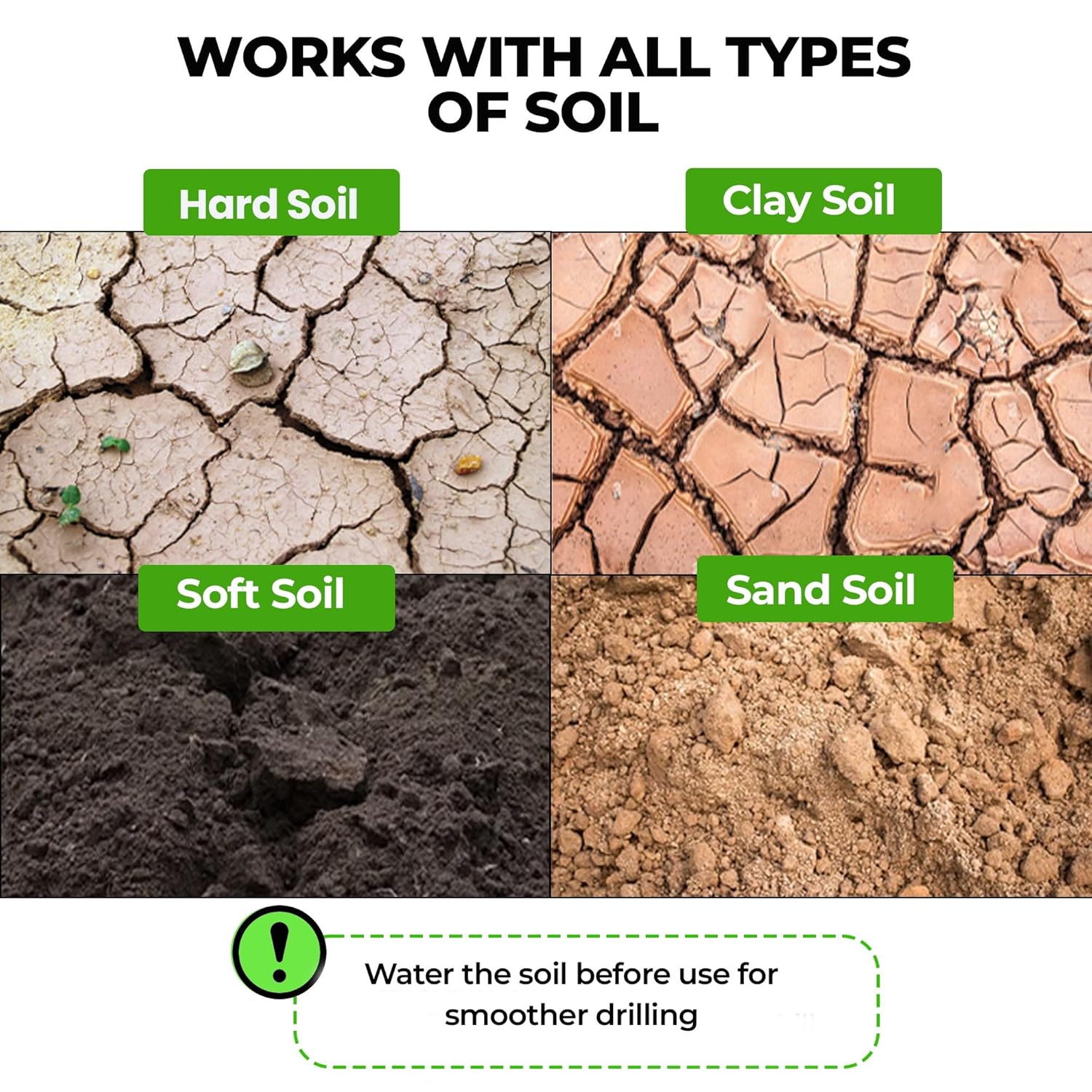 - Ditch Your Trowel for Good: Say goodbye to your gardening shovel! With four different sizes crafted from high-quality, heavy-duty steel, each garden drill planter is designed to do the heavy lifting for you, making digging effortless and enjoyable. These augers work flawlessly on loose soil, hard ground, sand, clay, and even ice