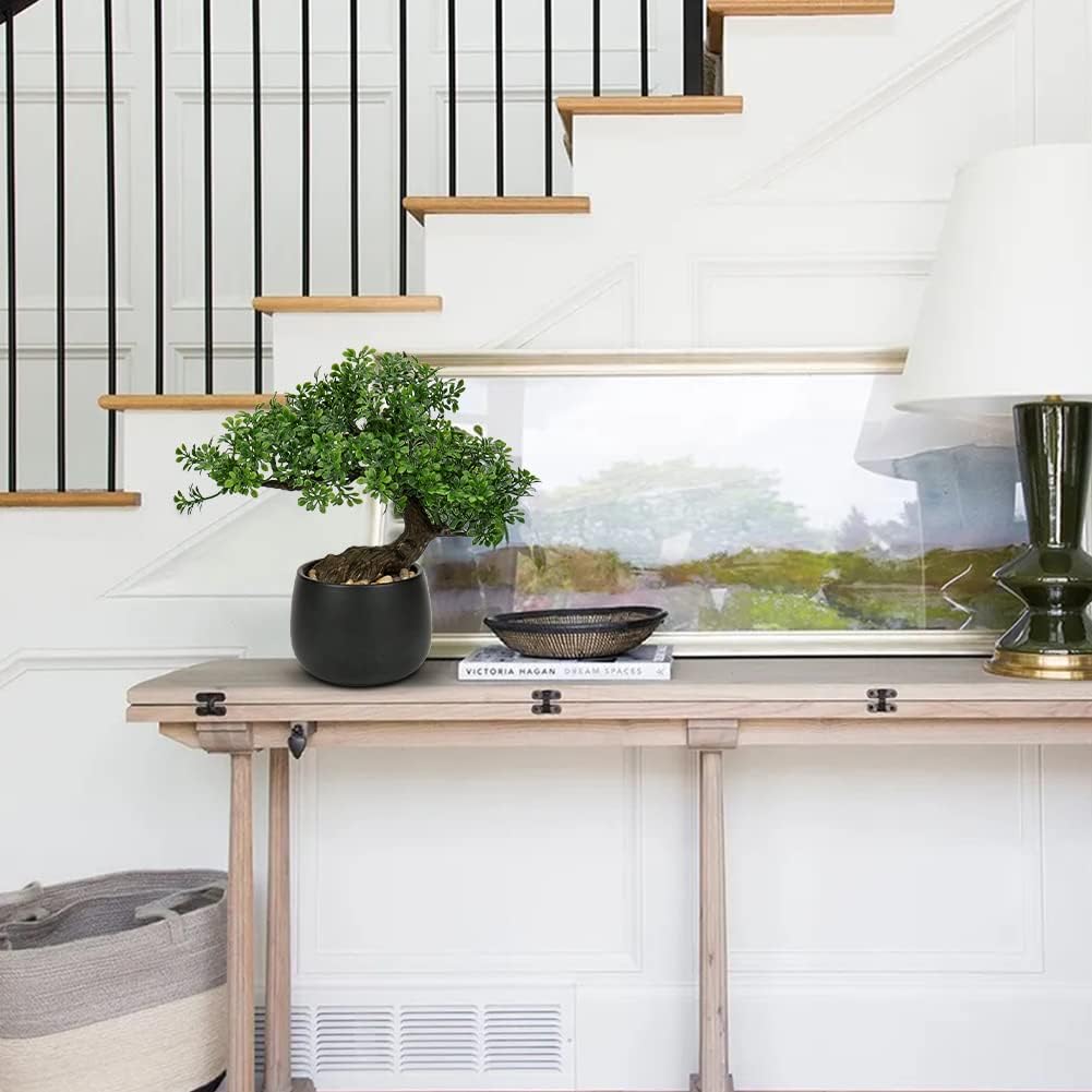 - BONSAI TREE WITH CERAMIC POTS - Artificial potted plants made of high quality PE material, non-toxic, no odor, durable, healthy and environmentally, Vivid color design and high simulation make small fake plant decor very layered and attractive. Mini bonsai tree not only a good home decorations, but also a good gift to your friends. Surprise someone special with one of our most popular artificial pine tree!