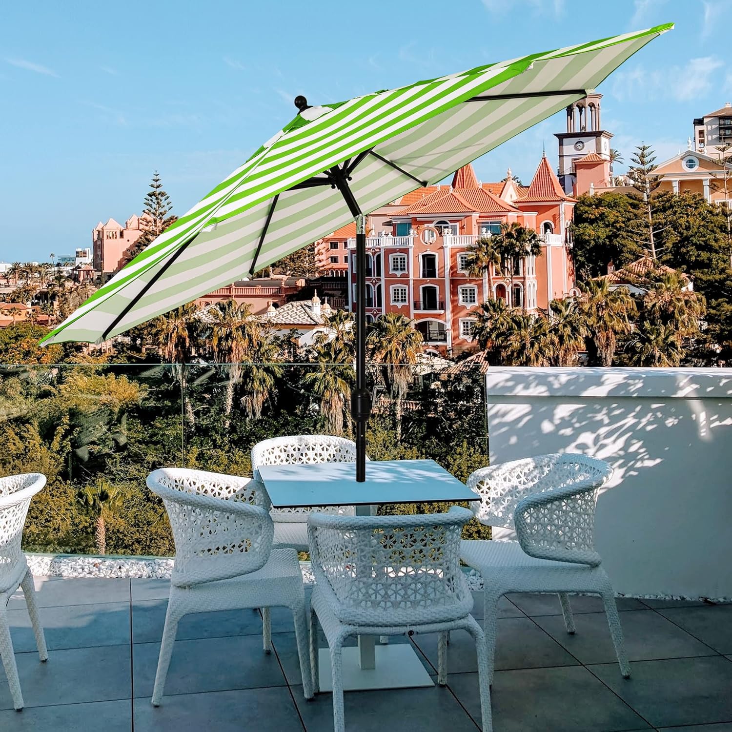 Sunnyglade 9' Patio Umbrella Outdoor Table Umbrella with 8 Sturdy Ribs (Grass Green and White)