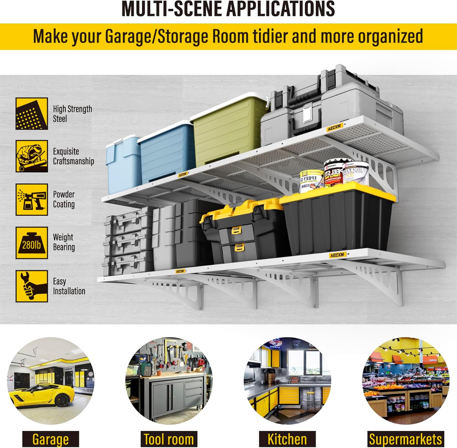- Premium Craftsmanship: This garage wall shelving is crafted from a single steel sheet, precision-stamped and folded for strength. Unique high-density hole design enhances functionality while delivering a sleek, modern aesthetic