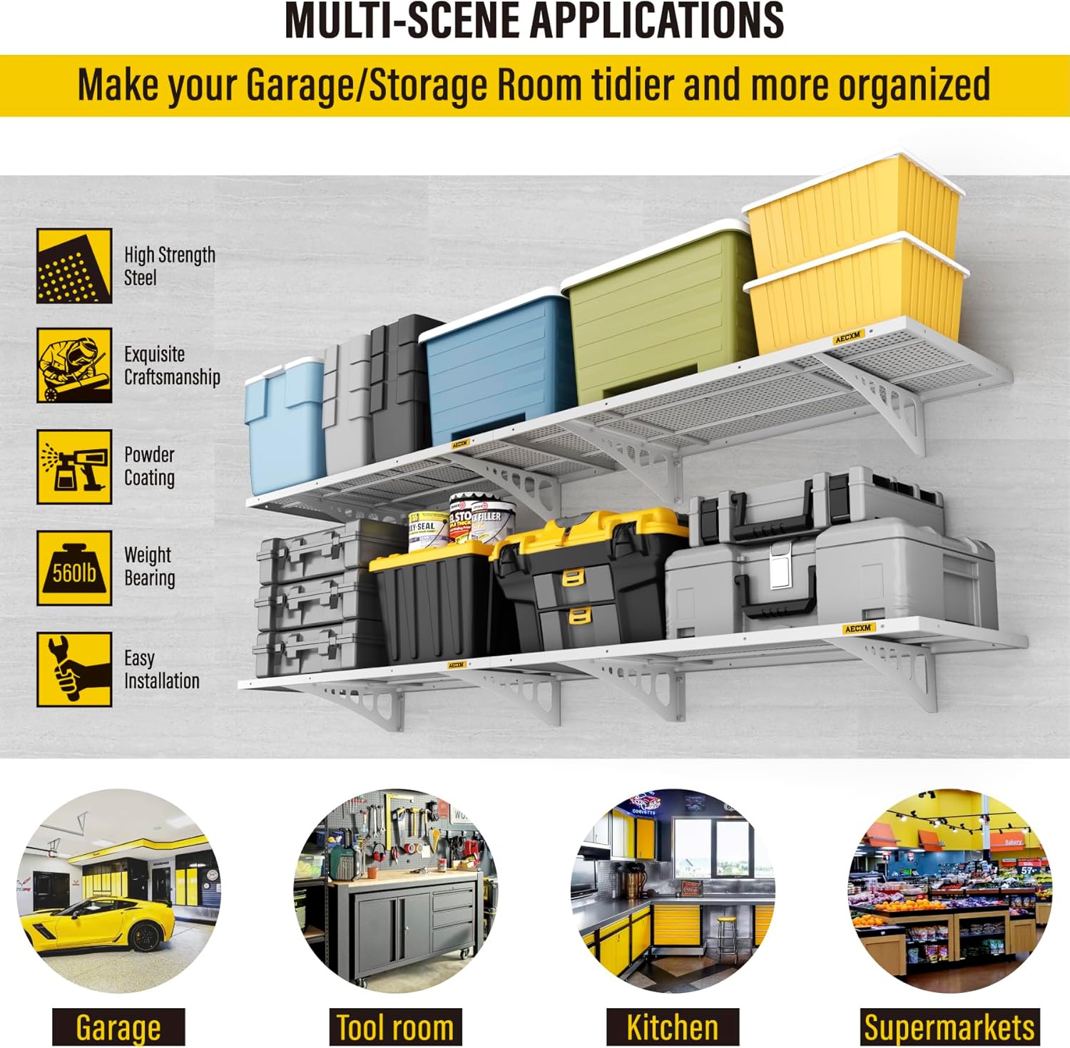 - Easy Installation: Includes high-quality screws and a detailed instruction manual, allowing one person to effortlessly complete the setup. This 1.64x4ft garage shelf wall mount offers ample storage space for your garage, kitchen, or pantry, keeping everything organized and within reach