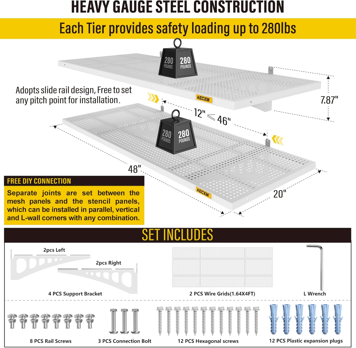 - Customer Support: AECXM offers comprehensive after-sales service. If you have any questions, feel free to contact our teamβweβll assist you promptly. (Note: For installation on brick or concrete walls, use expansion anchors to securely fasten the heavy duty shelving after drilling.)