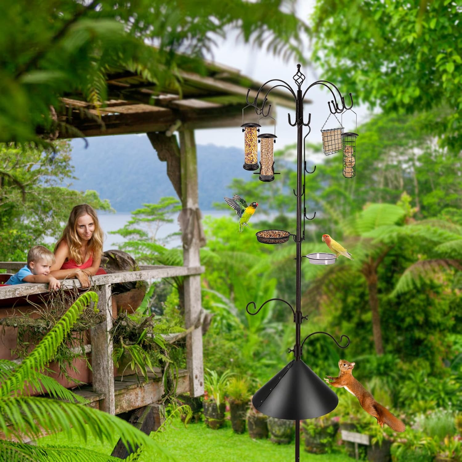 - Perfect Gift: This bird feeder station is a perfect gift for bird lovers and a great gift for family and friends. Feeder hangers kit can bring more fun of family and friends, put the bird feeder holder in the garden or patio, sitting at home can watch the birds come to feed, adding a different kind of happiness to their lives
