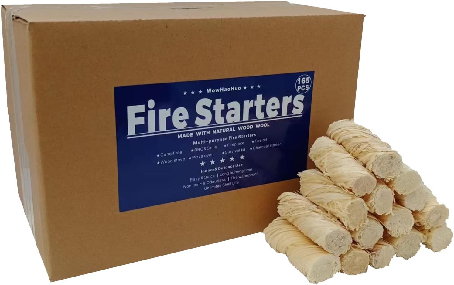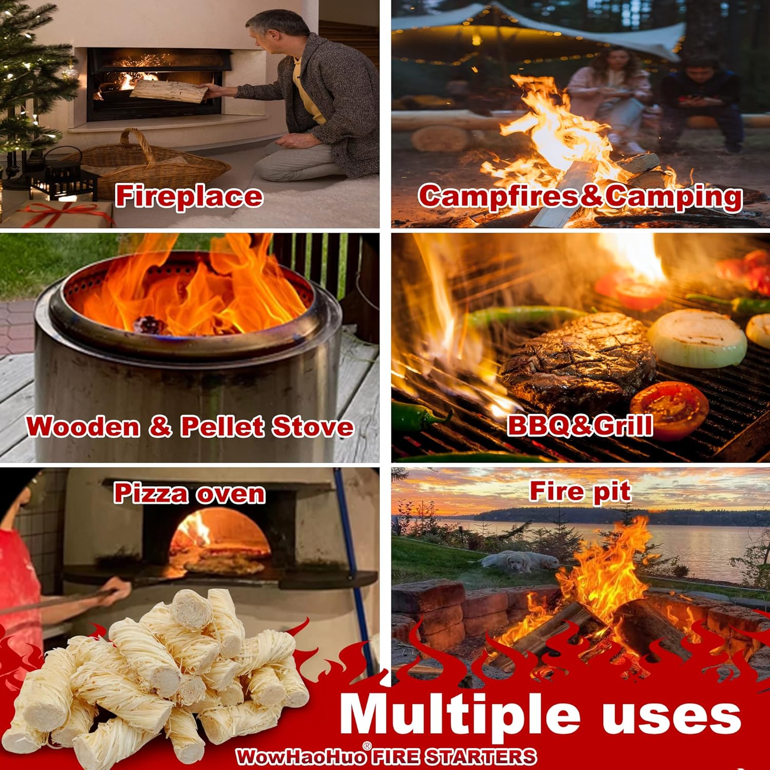 - ALL-PURPOSE & VERSITILE –Get a fire going anywhere fast. Easily combustible WowHaoHuo natural fire starters perfect for campfires,Fireplace,BBQ&Grill,pizza oven,hiking, fire pits,Wood & Pellet Stove,Smoker,Survival,Camping, Hunting, Fishing& Boating,emergency preparedness.