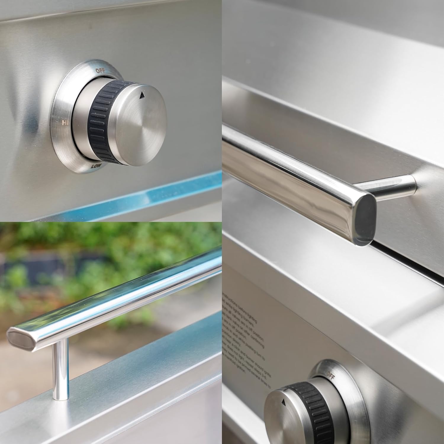 - ăProfessional-Grade MaterialăThe built in griddle is made of 304 stainless steel, a high-quality material that is known for its durability and resistance to corrosion and rust; The quality griddle is also a sleek, modern, and stylish addition to your backyard or patio;