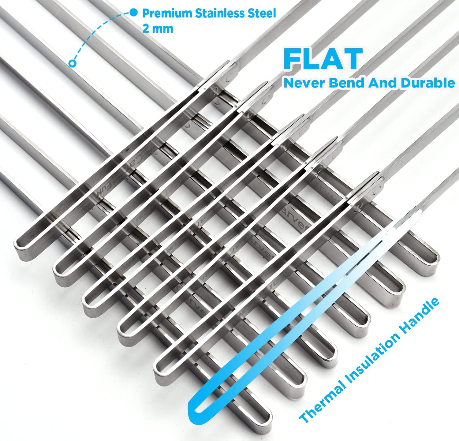 - Premium Stainless Steel And Flat: Metal Kabob Skewers Sticks Are Made Of Premium Stainless Steel,Food Grade, Rust-Proof, Heat-Resistant, And Corrosion-Resistant. These Heavy Duty Grill Skewers Are Corrosion Resistant The Edges Of The Barbecue Skewers Are Well Polished, And The Metal Skewers Are Safe To Use. Metal Shish Kabab Skewer Is Of Solid One-Piece Design. The Reusable BBQ Sticks Are Thick Enough To Allow You To Add Weight Without Bending Or Twisting- Carvefun Products Are Built To Last.