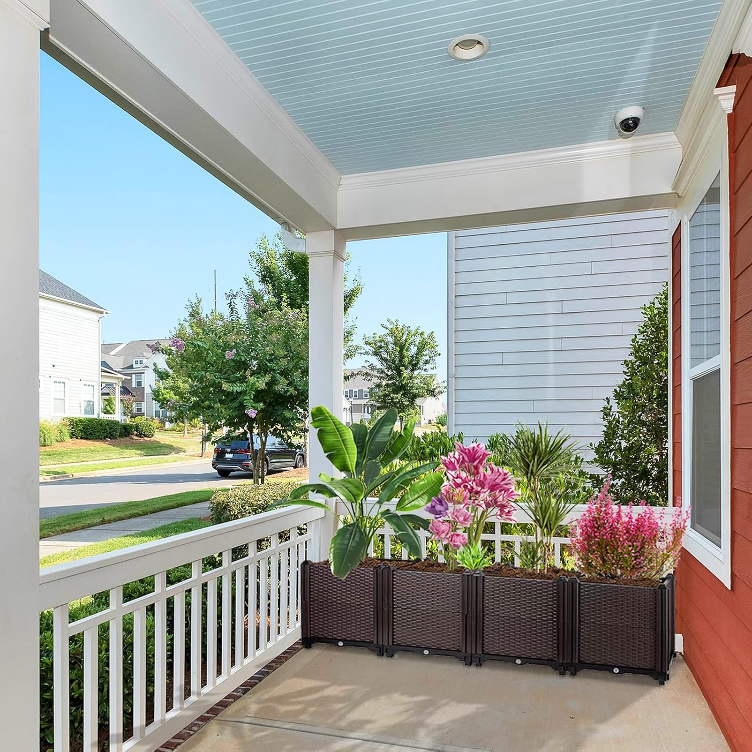 - 【Watering System with Reservoir】:The flower box features self-watering disk & drainage holes, can provide water reservation spaces to avoid plants over-drying when forget to water for some time. Drainage holes will effectively drain out excess water, preventing roots from decay.