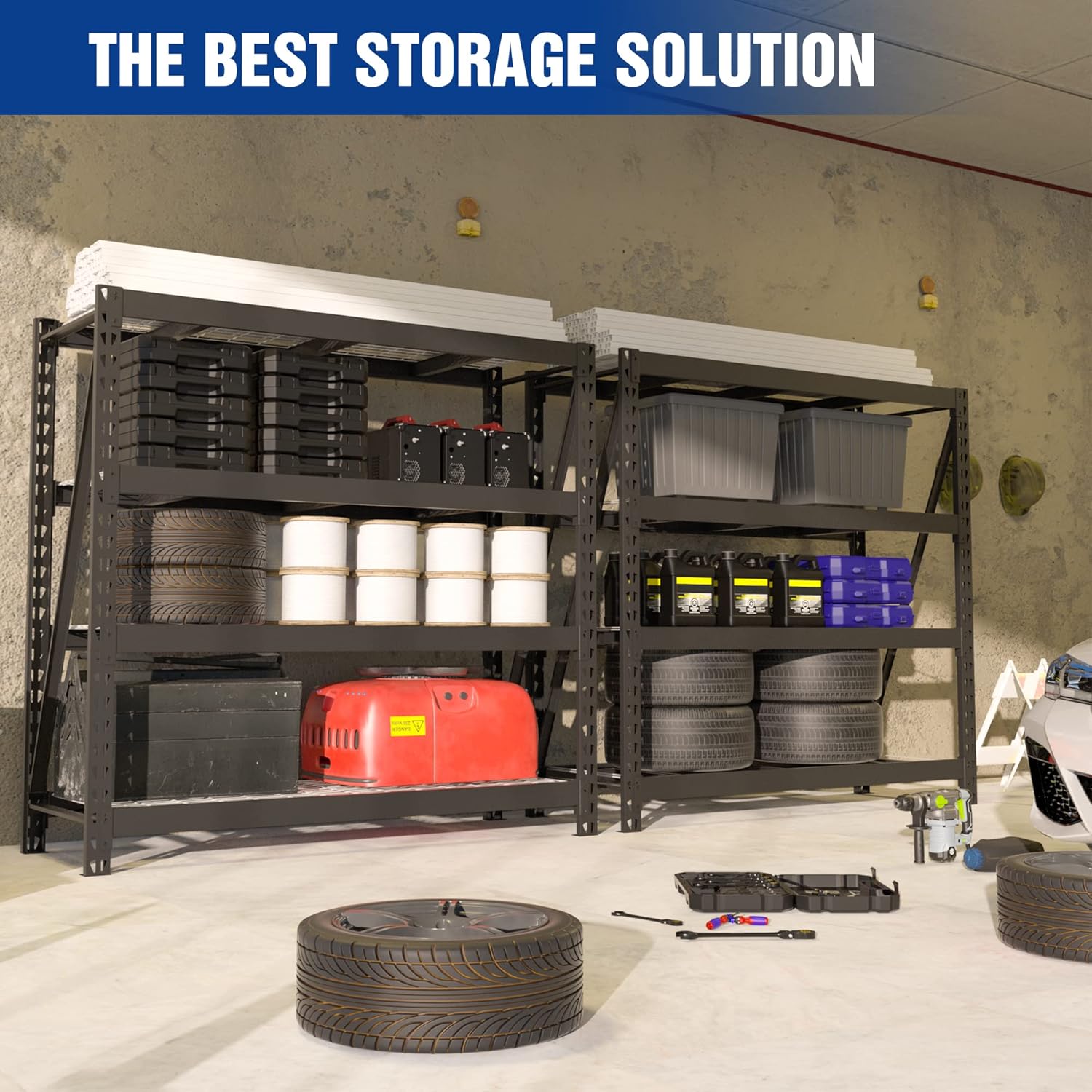 - HEAVY DUTY FOR REAL — The total load capacity is 7200 lbs, approximately equal to the weight of 2 vehicles. Each tier has a load capacity of 1800 lbs, which means this metal shelving unit will always be your reliable partner.
