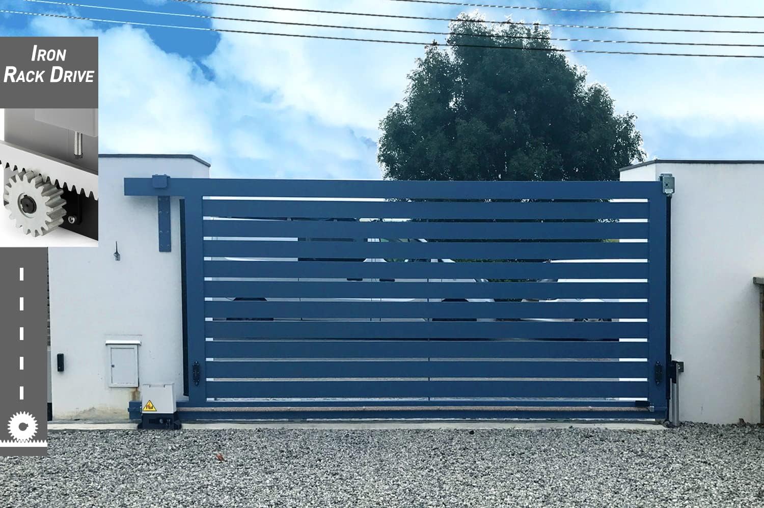 Blütezeit 1800lb Automatic Sliding Gate Opener Rack Drive Operator for Heavy Driveway Slide Gates Up to 40 Feet, Rolling Gate Motor with 2 Remote Controls, Infrared Sensor & Complete Hardware Kit