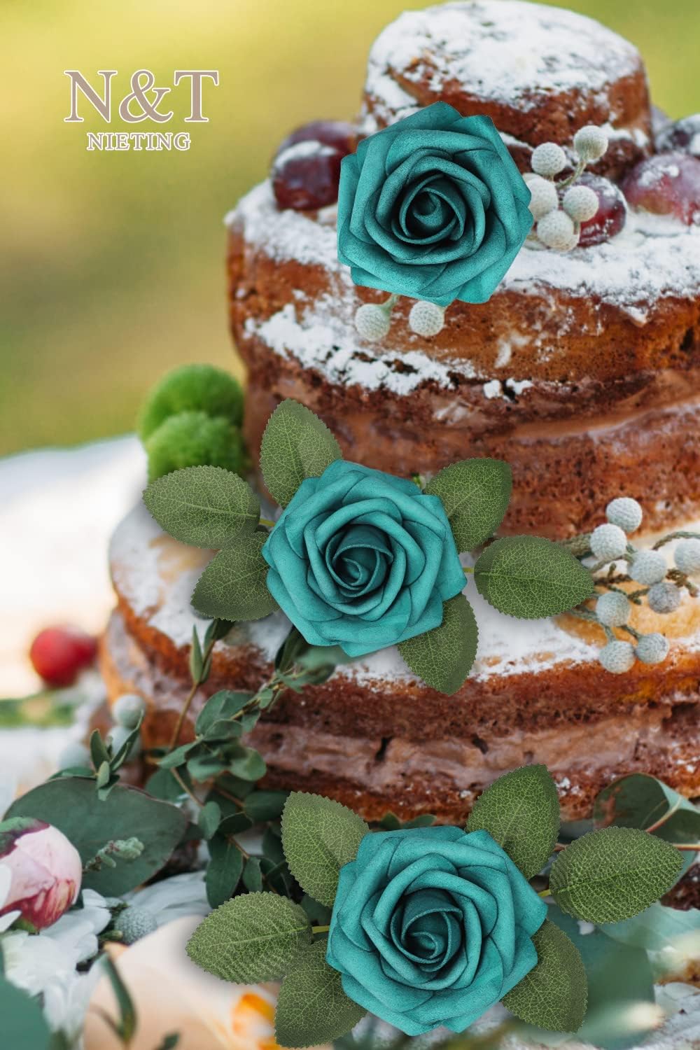 N&T NIETING Artificial Flowers Foam Roses 25 pcs Peacock Green Fake Roses w/Stem for DIY Home Decor Indoor Outdoor Centerpieces Arrangements Bouquets