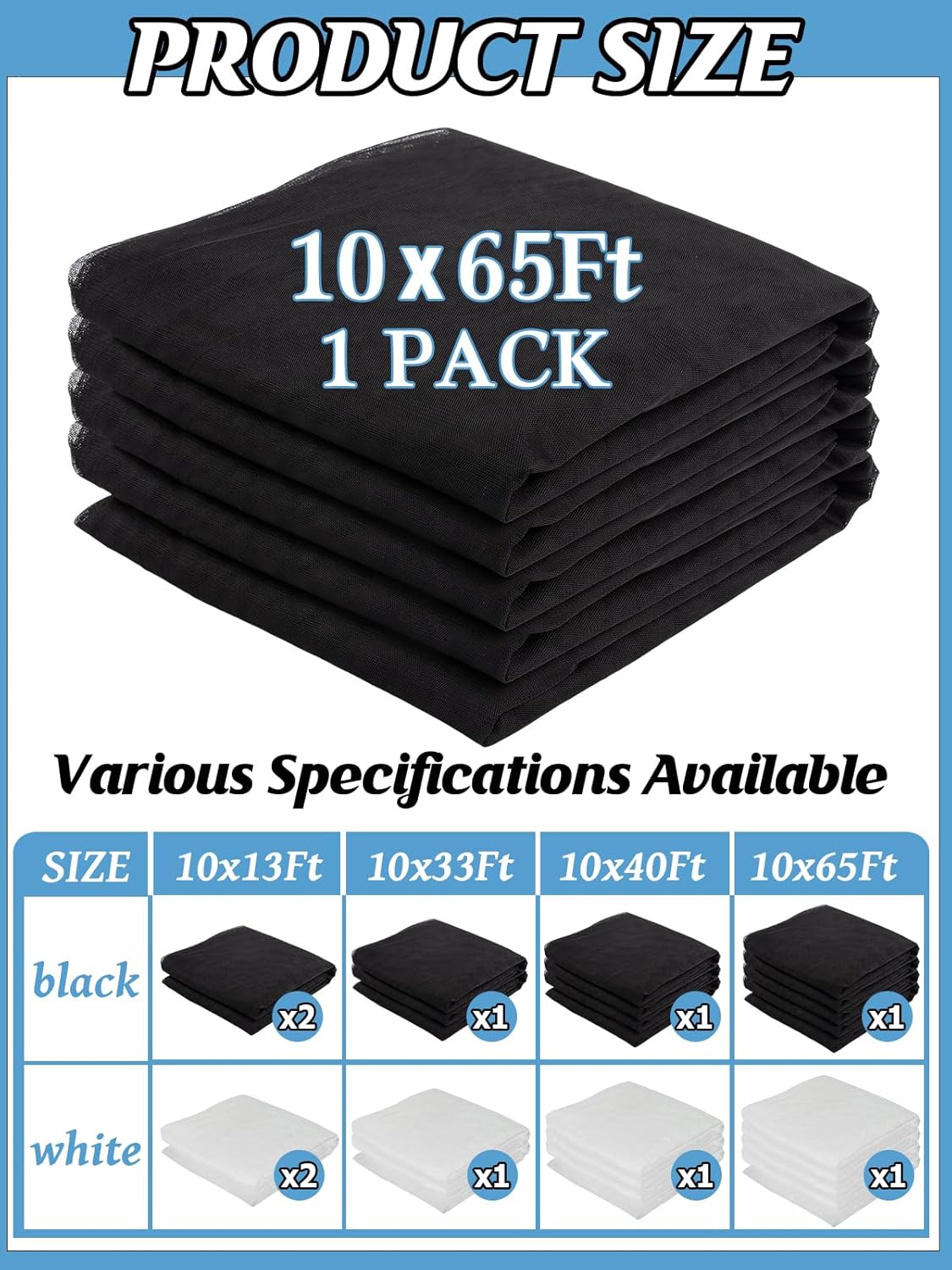 - What You'll Receive: You will get a black garden net barrier with dense mesh, measuring 10ft x 65ft. It's quite large and soft so you can easily cut it into different sized pieces as you need.