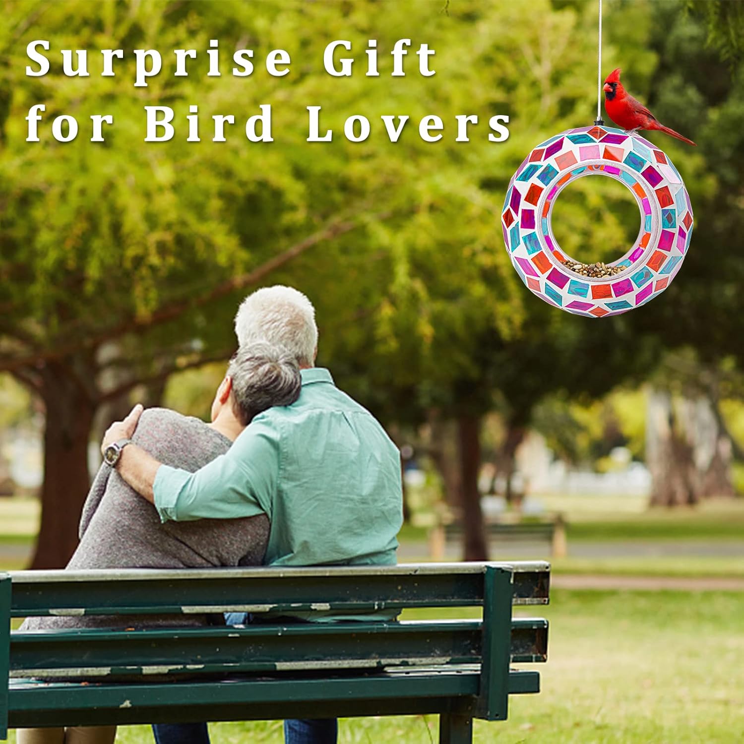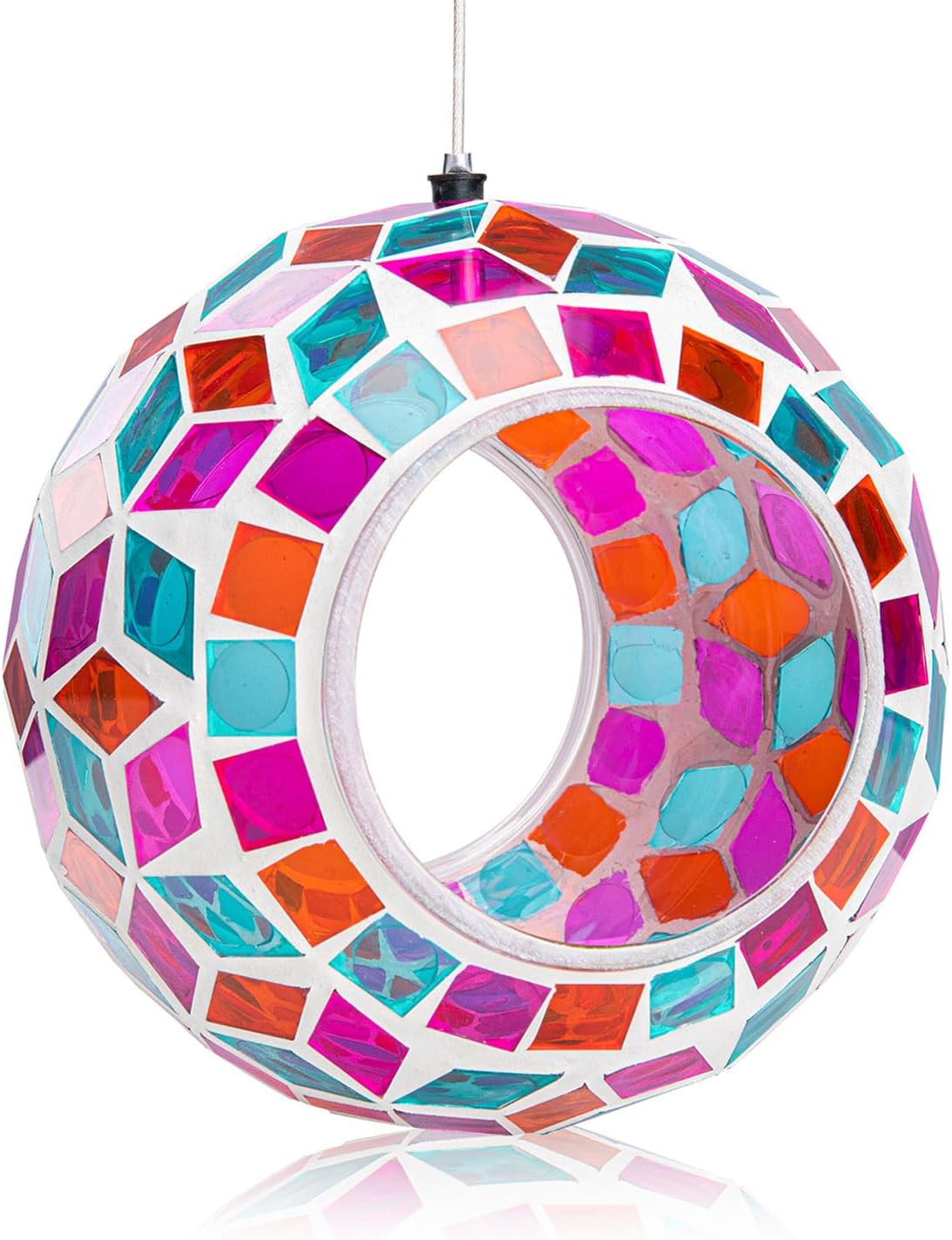 - Mosaic Bird Feeder: Has a colorful mosaic glass design which reflects beautiful lights in the sun and attracts birds to feed, making your home and garden more lively