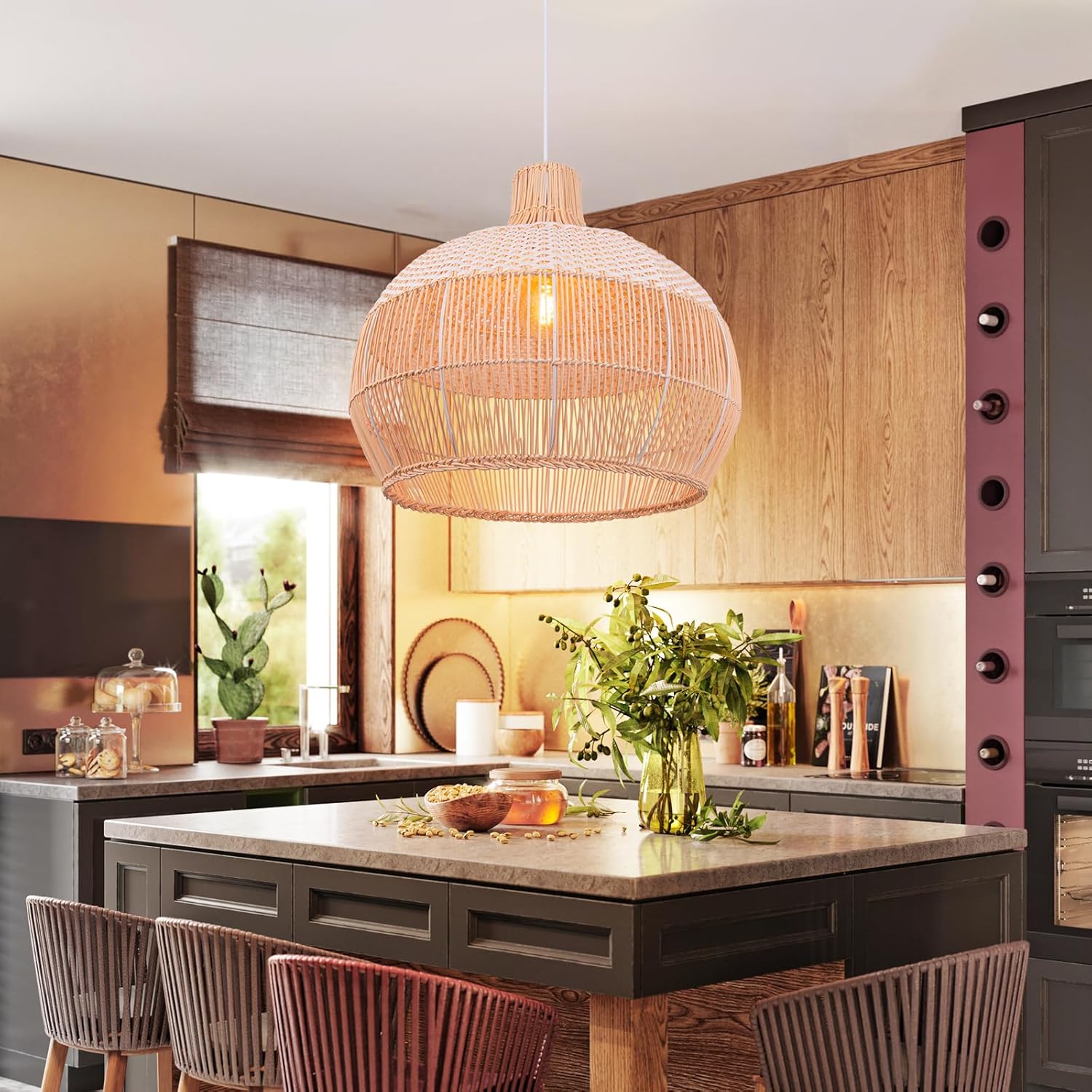 - 【Unique Design】Rustic retro boho coastal style design,chandeliers made of natural rattan and white plastic hand-woven, beautiful and elegant, suitable for a variety of styles.This rattan chandeliers are both a light source and an artistic lamp for your home decoration,which can add elegance to your room.