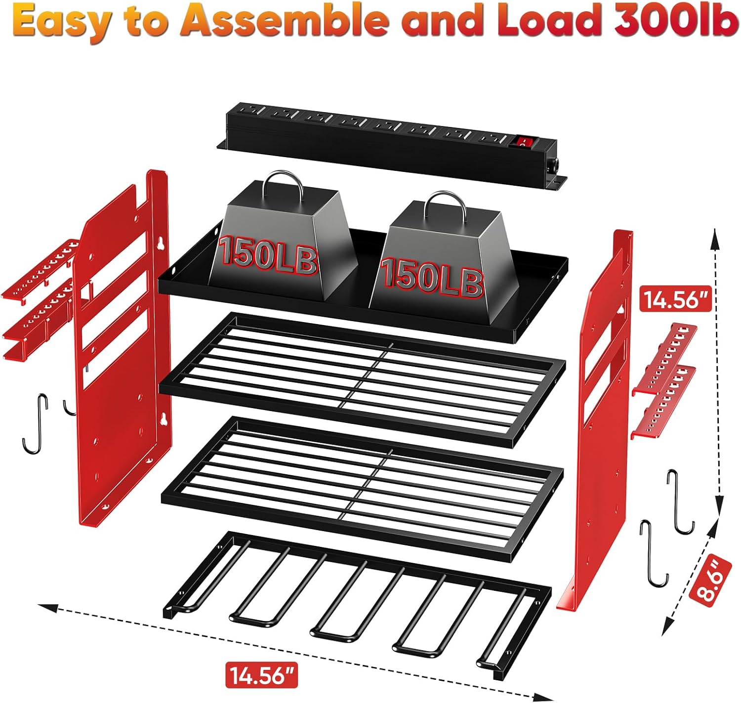 - Power Tool Organizer with 8-Outlet Power Strips: Our garage shelf wall mount is designed to charge your tools, eliminating the need to search for an outlet. You can easily charge your tools on the shelf, which not only resolves your storage issues but also offers a convenient solution for charging tool batteries. Please note that the product includes a 6-foot (2-meter) power cord.