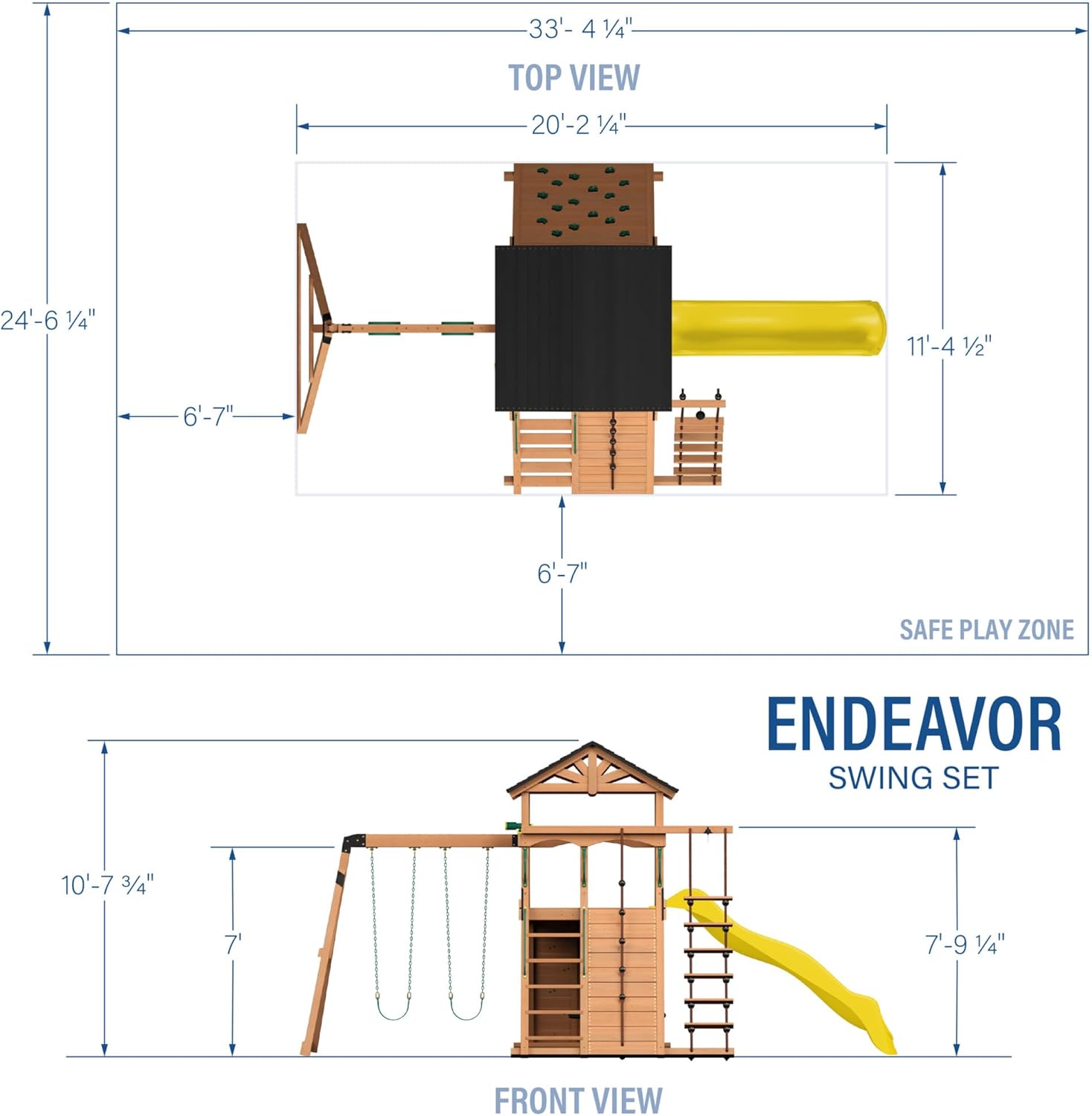 - Climbing Rope Ladder: 9-foot-tall rope ladder with wooden rungs offers adventurous climbing fun, leading to a victory bell to celebrate the summit