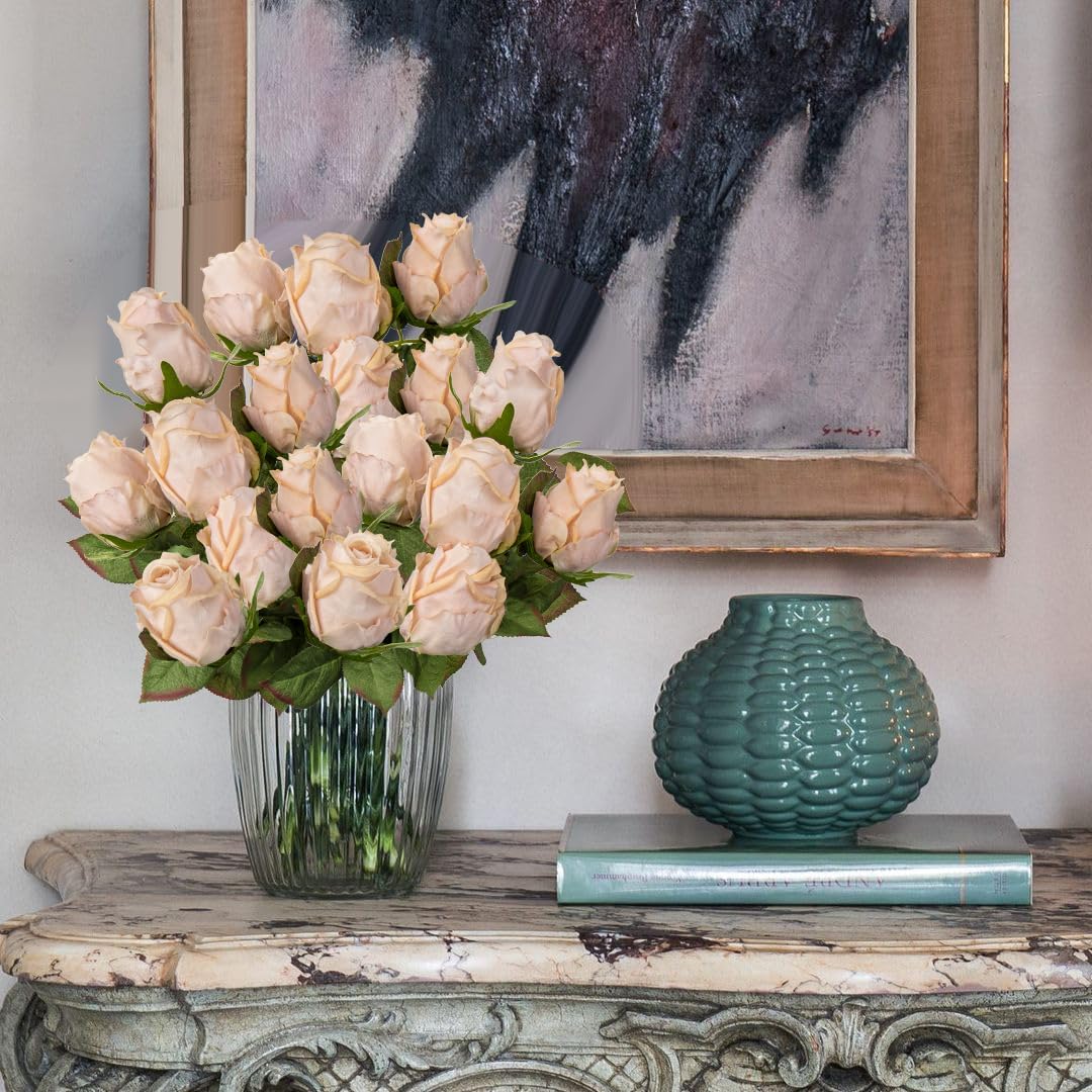 - š¹ REAL TOUCH FABRIC - This real touch roses artificial flowers are made of special smooth velvety feel fabric Instead of silk, combining special craftsmanship to make artificial roses with stems fresh touch and soft petals. This material is eco-friendly, weatherproof,non-toxic and has no abnormal odour.Our artificial single rose are so beautiful and perfect you will truly think they are real