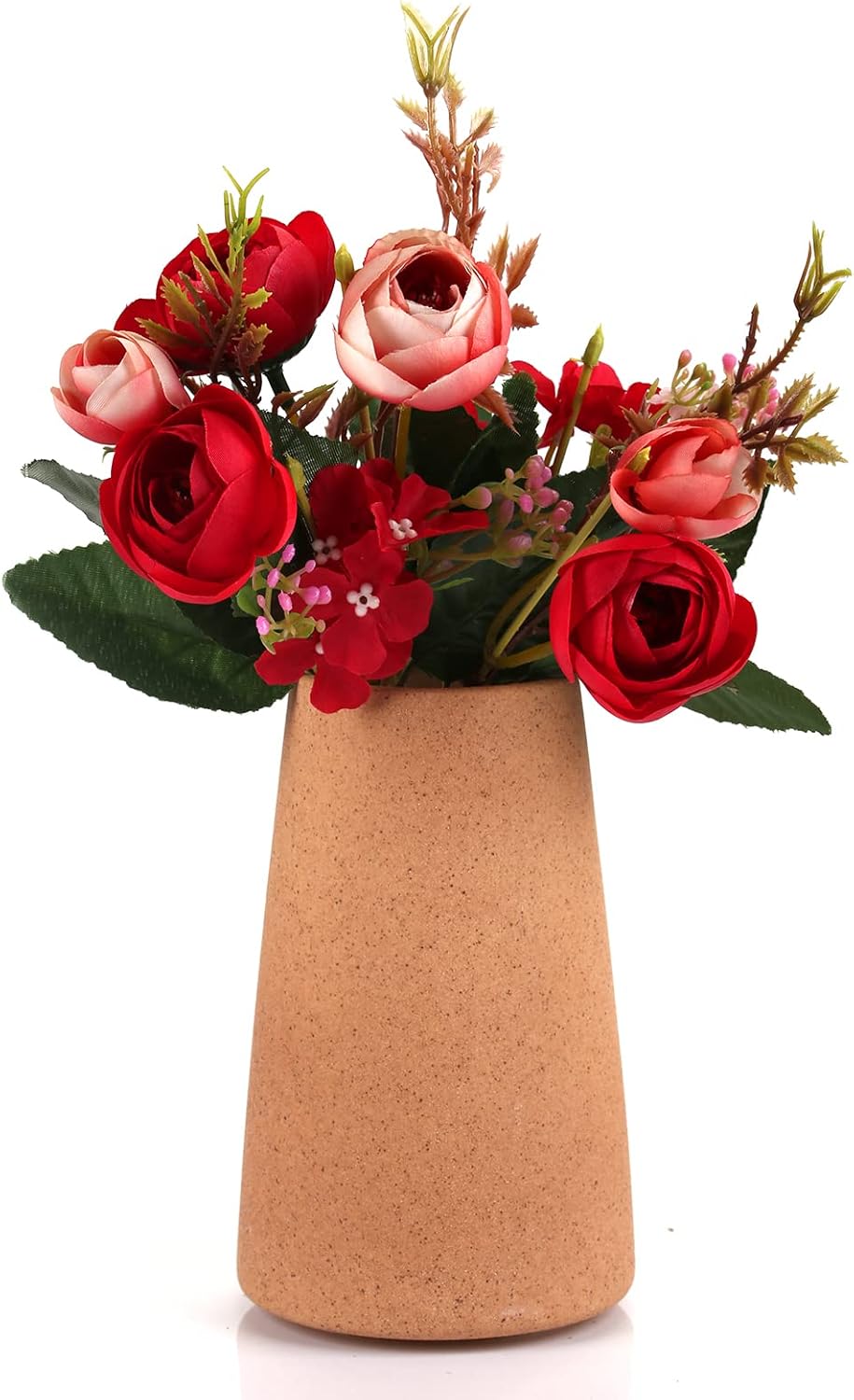 Simple Vase for Flowers Plants, Matte Vases for Modern Table Shelf Home Decor Wedding Boho Decor, 6" H Frosted Elegant Ceramic Vase for Pampas Grass Fluffy Stem Bouquet Lavender Flowers (Brown, 4)