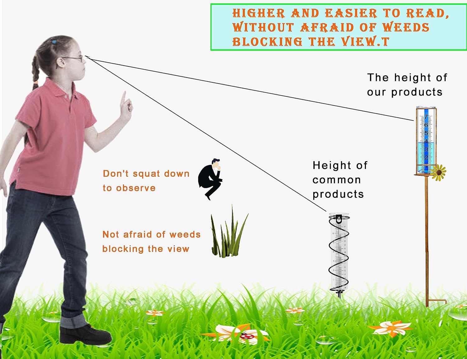 - 【Fashionable and Stable Design】The rain gauge is made of metal stakes, rust-proof and upright. The upgraded rain gauge has two feet ground plug, which can make the rain gauge more stable and will not be affected by high wind. The rain gauge can help you know how much water your plants are watering or how much rain has fallen in your area. It can also be used as a decoration for courtyard, lawn and garden.
