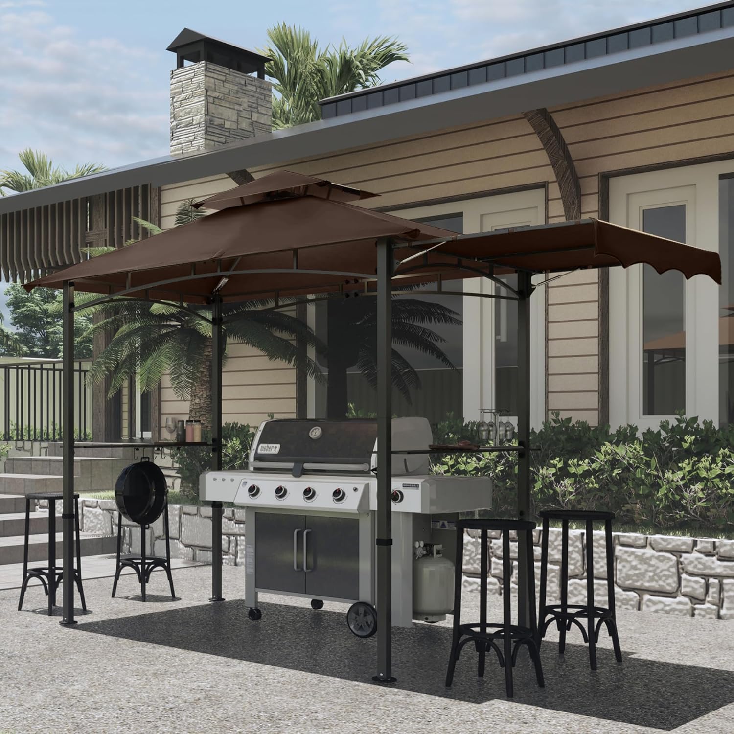 MASTERCANOPY 11 x 5 Grill Gazebo with Extra Side Awning Outdoor BBQ Gazebo with 2 LED Lights for Patio Party Backyard Picnic(Brown)