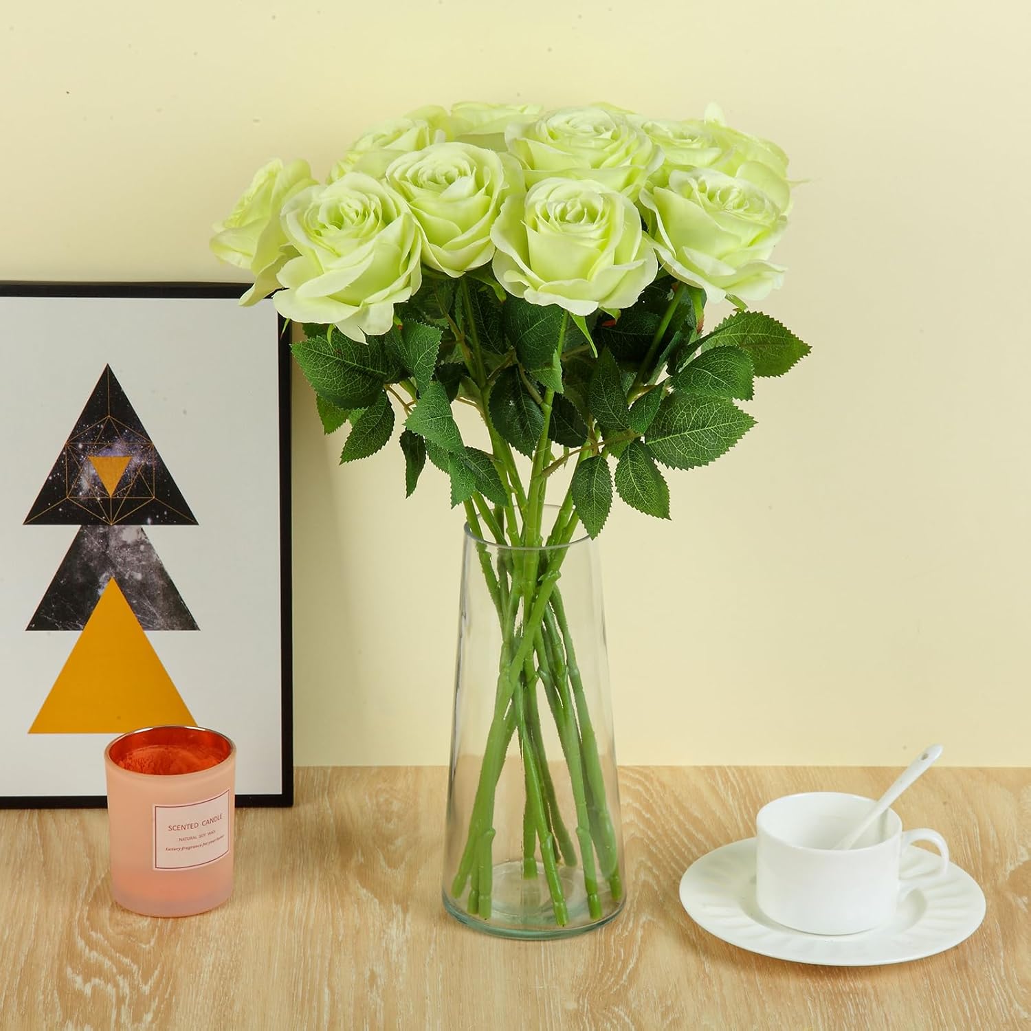 12pcs Light Green Roses Artificial Flowers Fake Roses Silk Flowers Roses with Long Stems for Wedding Home Party Centerpieces Decorations