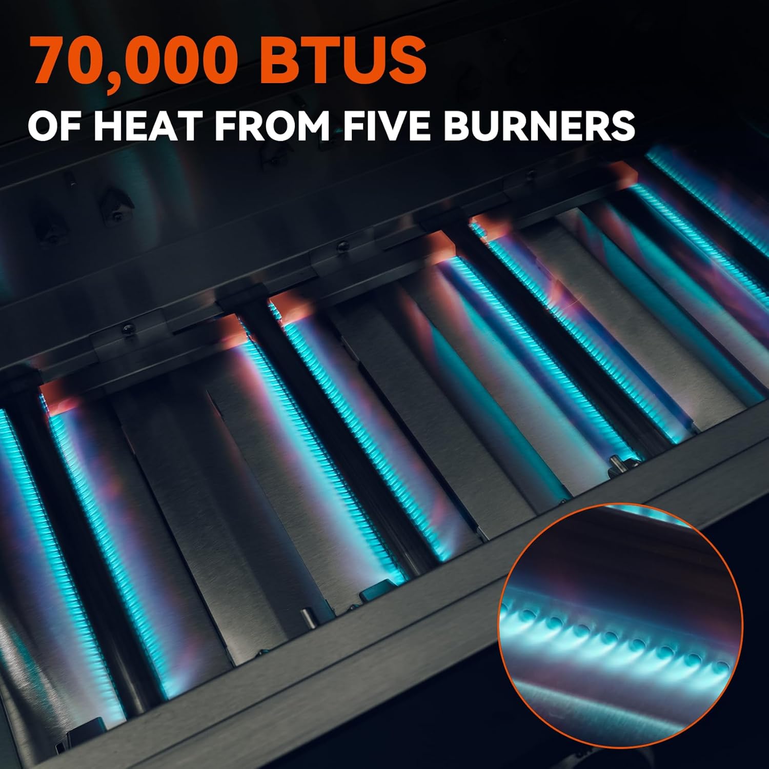 - 【Powerful Burners】The built-in grill has five 14,000 BTU tube burners, delivering exceptional grilling and searing results. With a total cooking power of 70,000 BTUs.