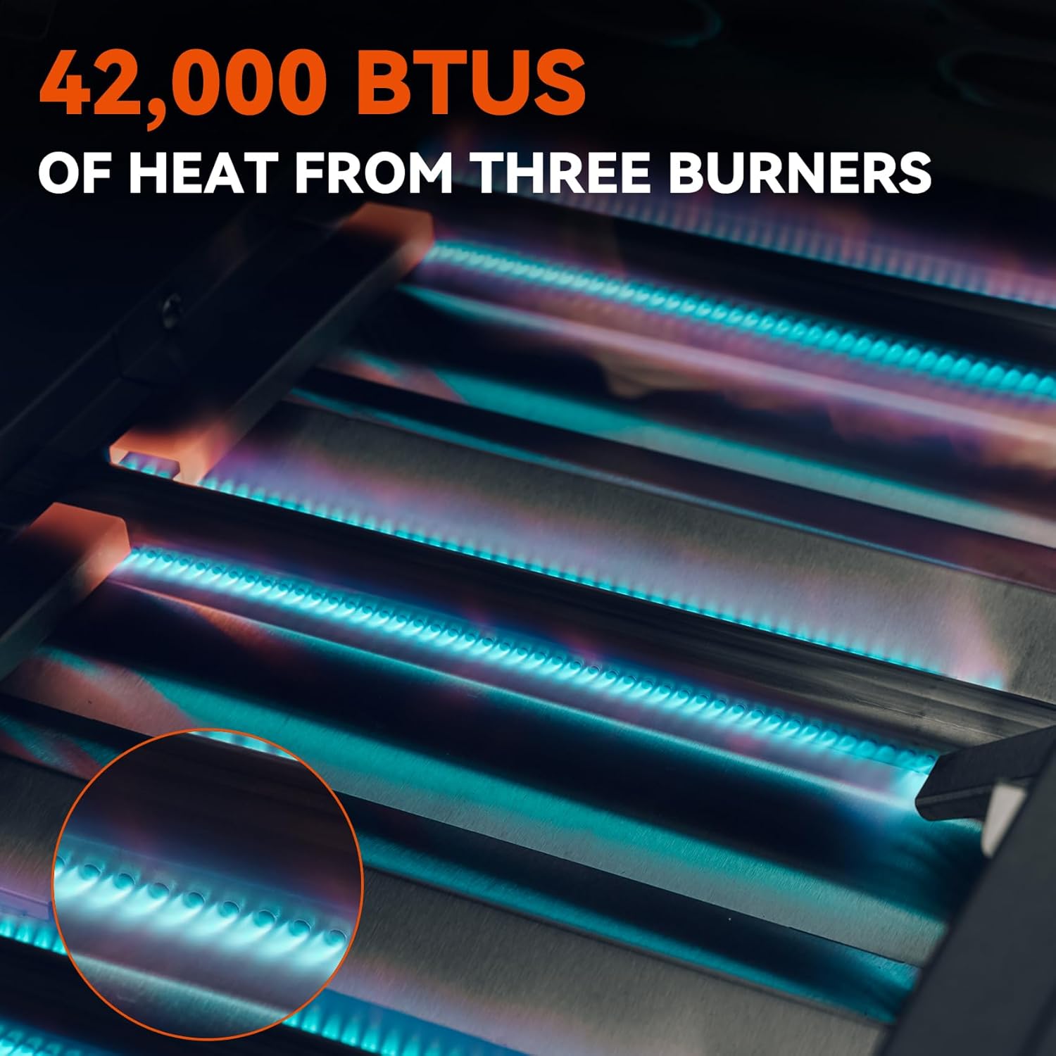 - 【Powerful Burners】The built-in grill has three 14,000 BTU tube burners, delivering exceptional grilling and searing results.