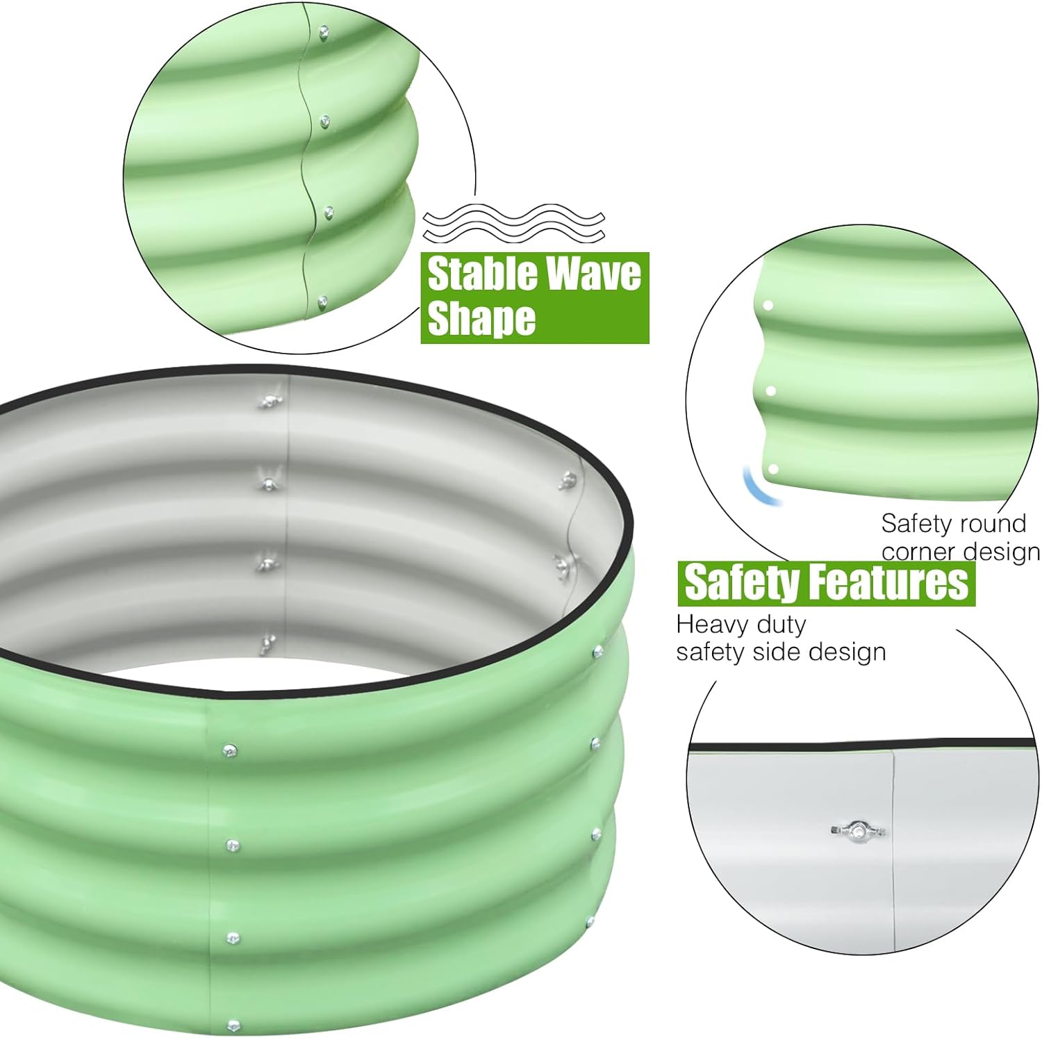 - DURABLE MATERAL: Made of thick galvanized steel plate, wave structure and round shape, rust-proof and durable, can stay in contact with the soil for a long time and resist corrosion.