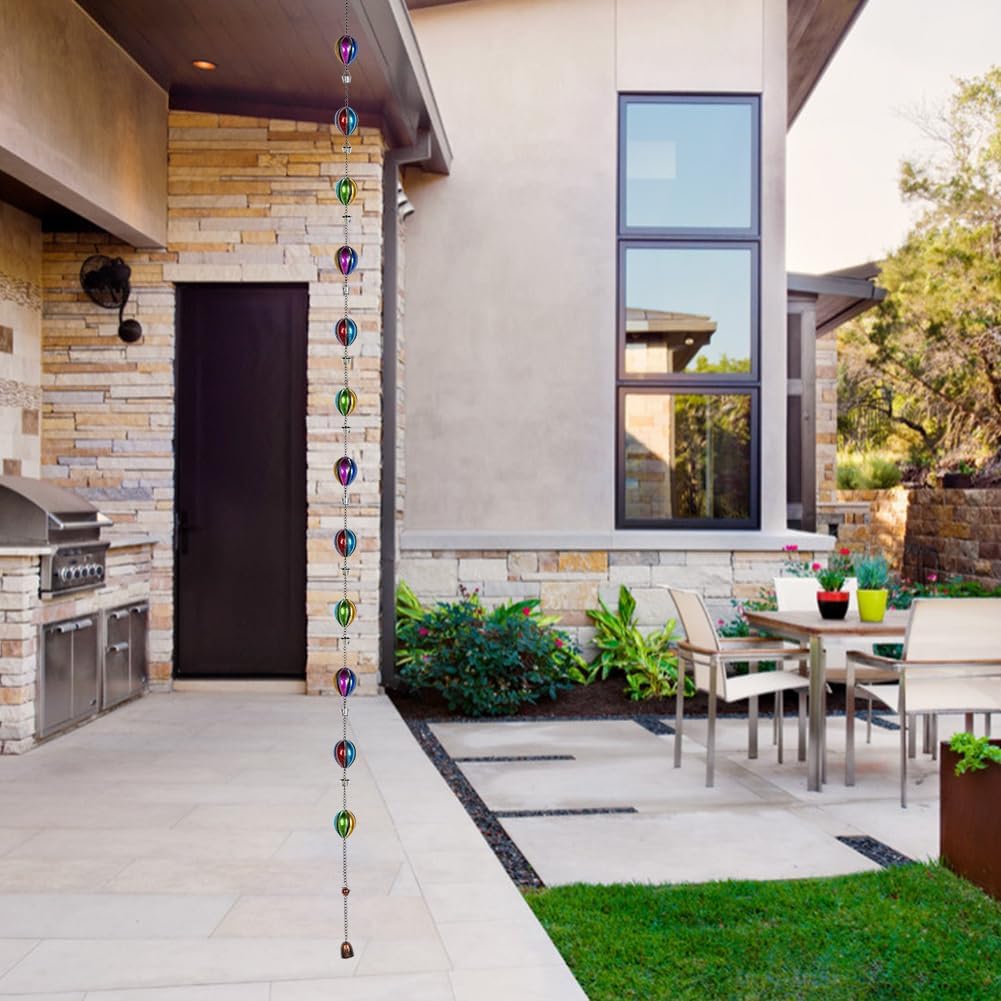 - Elegant Alternatives: The 9.7 ft hot balloon rain chain consists of 12 hot air balloons (2.9'' W, 3.54'' H) and chains. The size of the rain water chain is suitable for standard single-story buildings and adds a chic touch to roofs and awning dens. An elegant alternative to traditional gutter downspouts