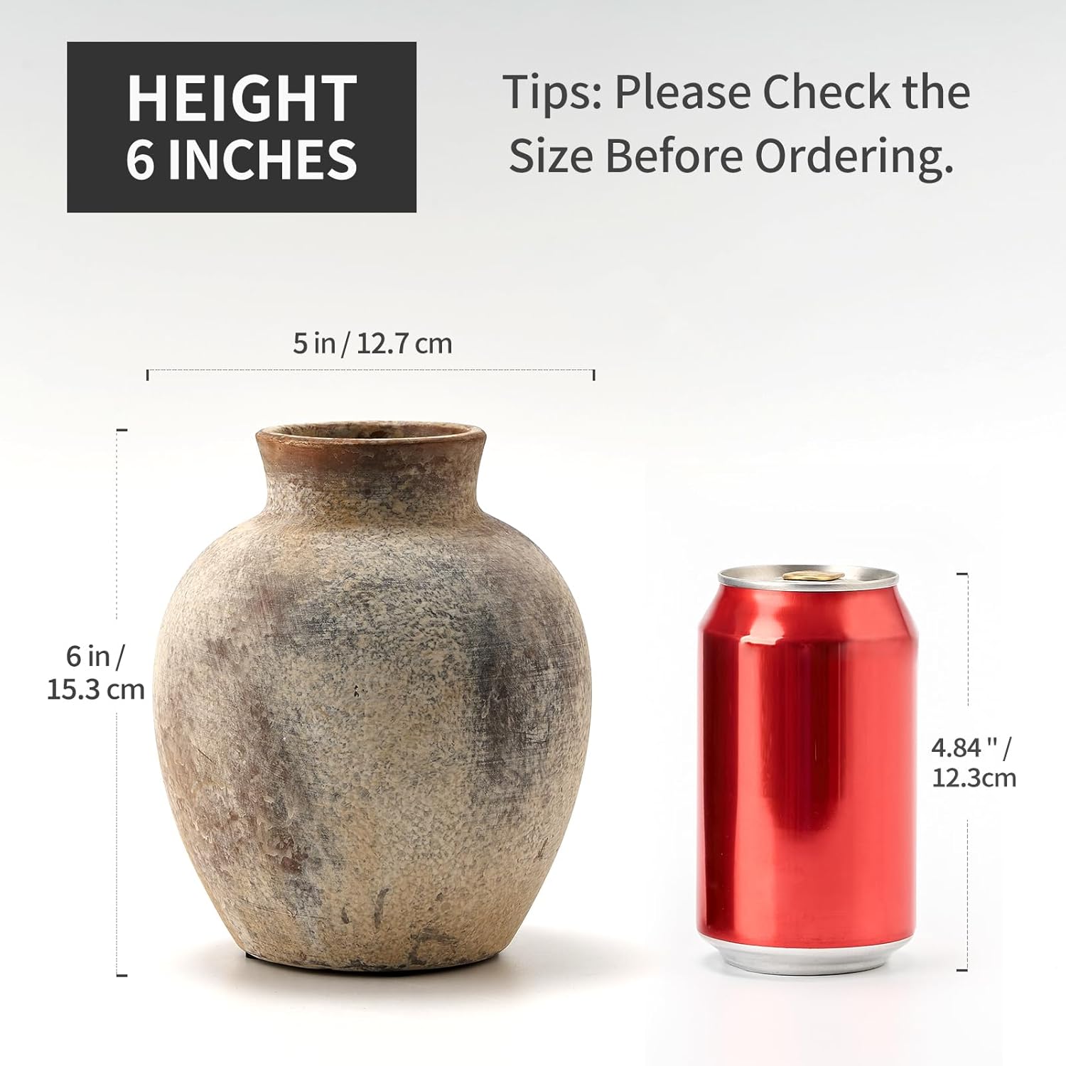 - šššš¬š®š«šš¦šš§šš¬: The rustic vase measures 6" height and 5" width with 2.4" opening.Perfect for greenery and dry or faux florals,but also can hold water for fresh flowers.The vase itself can be displayed indoors or outdoor as a fine decorative piece.