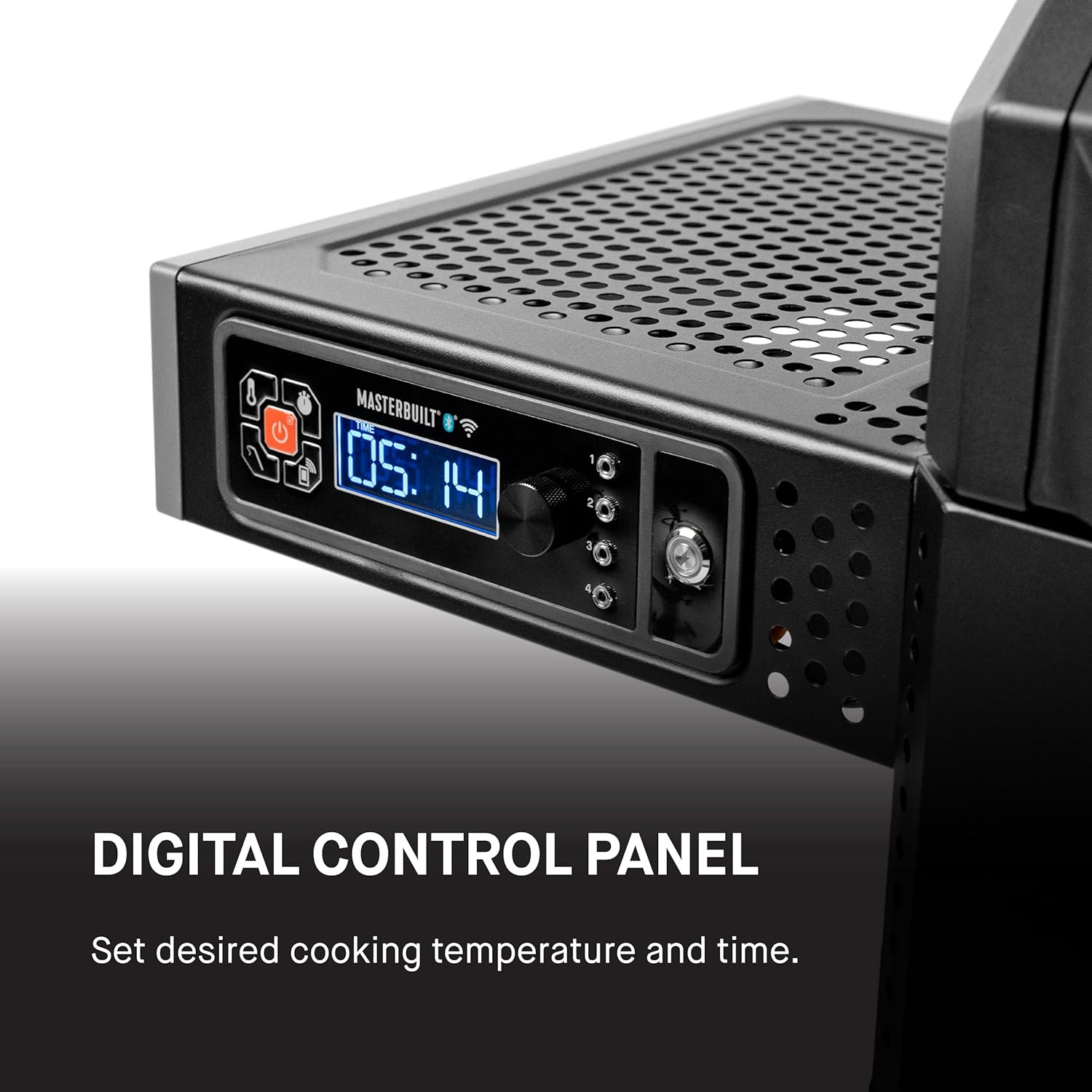 - DIGITAL CHARCOAL SMOKER GRILL - Set your desired cooking temperature on the digital control panel or the Masterbuilt app and the DigitalFan effortlessly maintains your desired cooking temperature for you