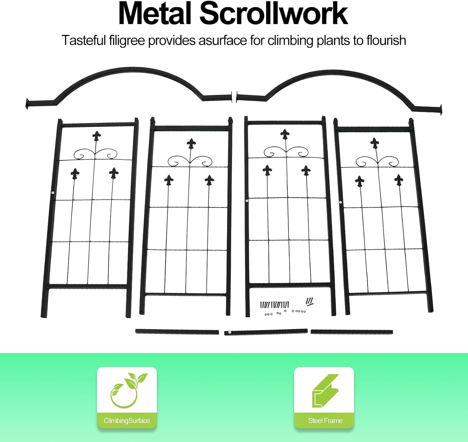 - Climbing Plants Trellis: These garden arches are designed to accommodate and support all types of climbing plants and vegetables, You can accentuate the beauty of your backyard with your own elegant garden feature.