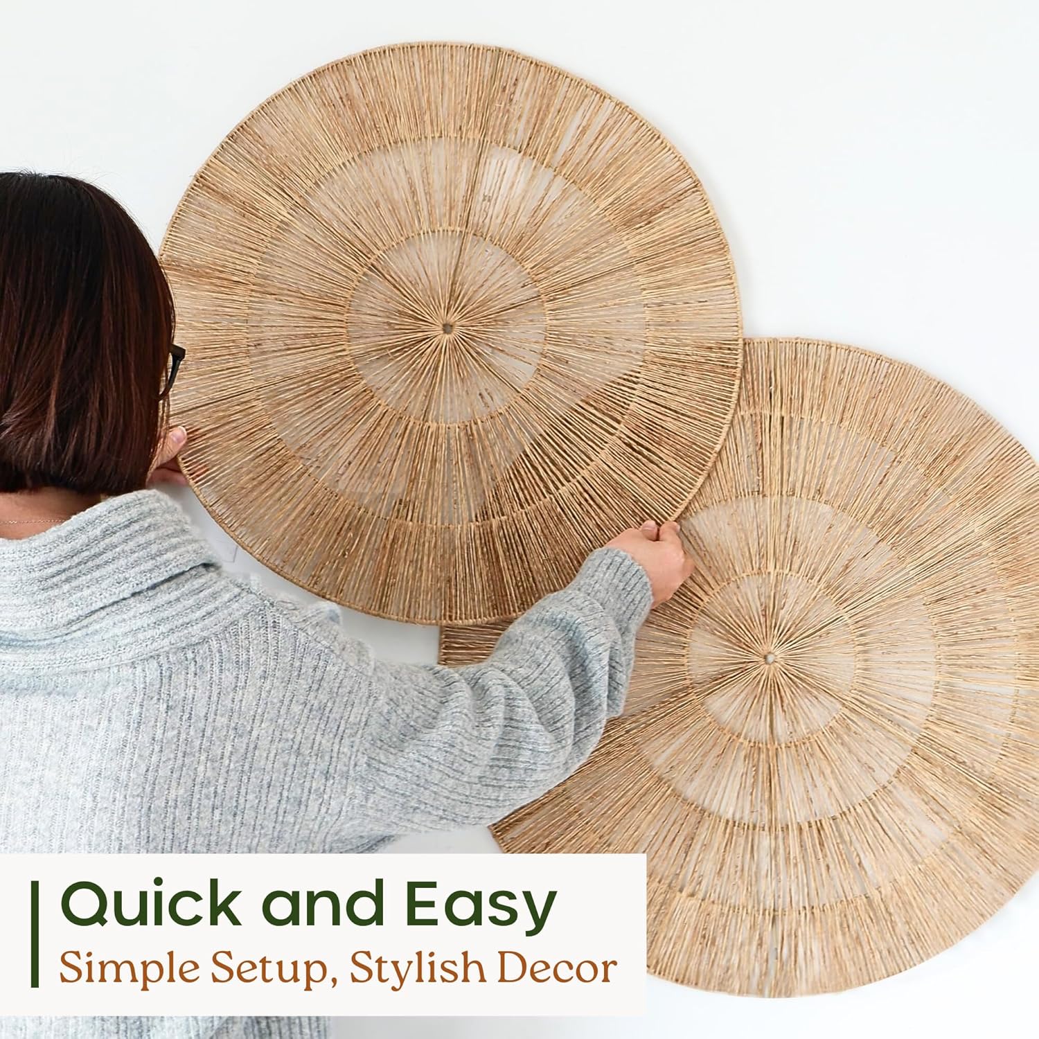 CHI AN HOME Wicker 23 Inch Jute Wall Decor Baskets, Set of 6 Extra Large Woven Jute Wall Plates, 23",21",15",13",12,10", Decorative Baskets for Wall Arts, Wall Hanging for Bedroom, Living Room, Office